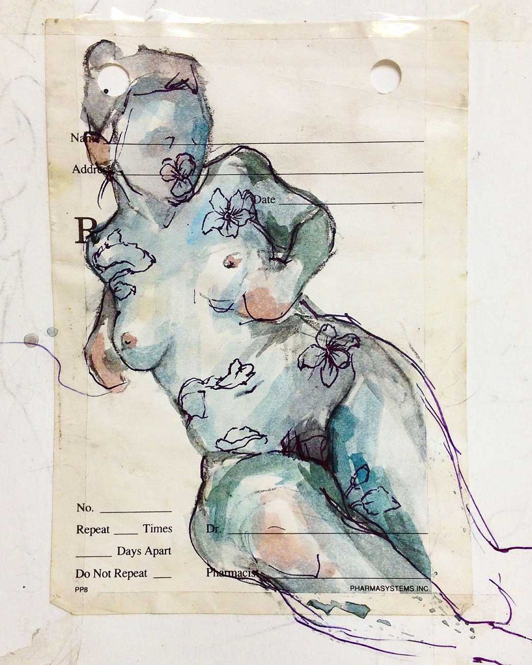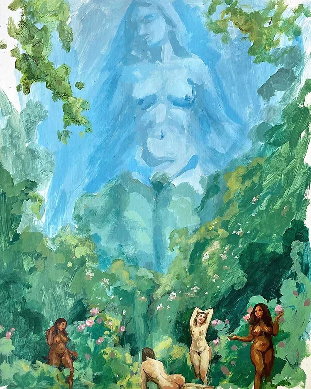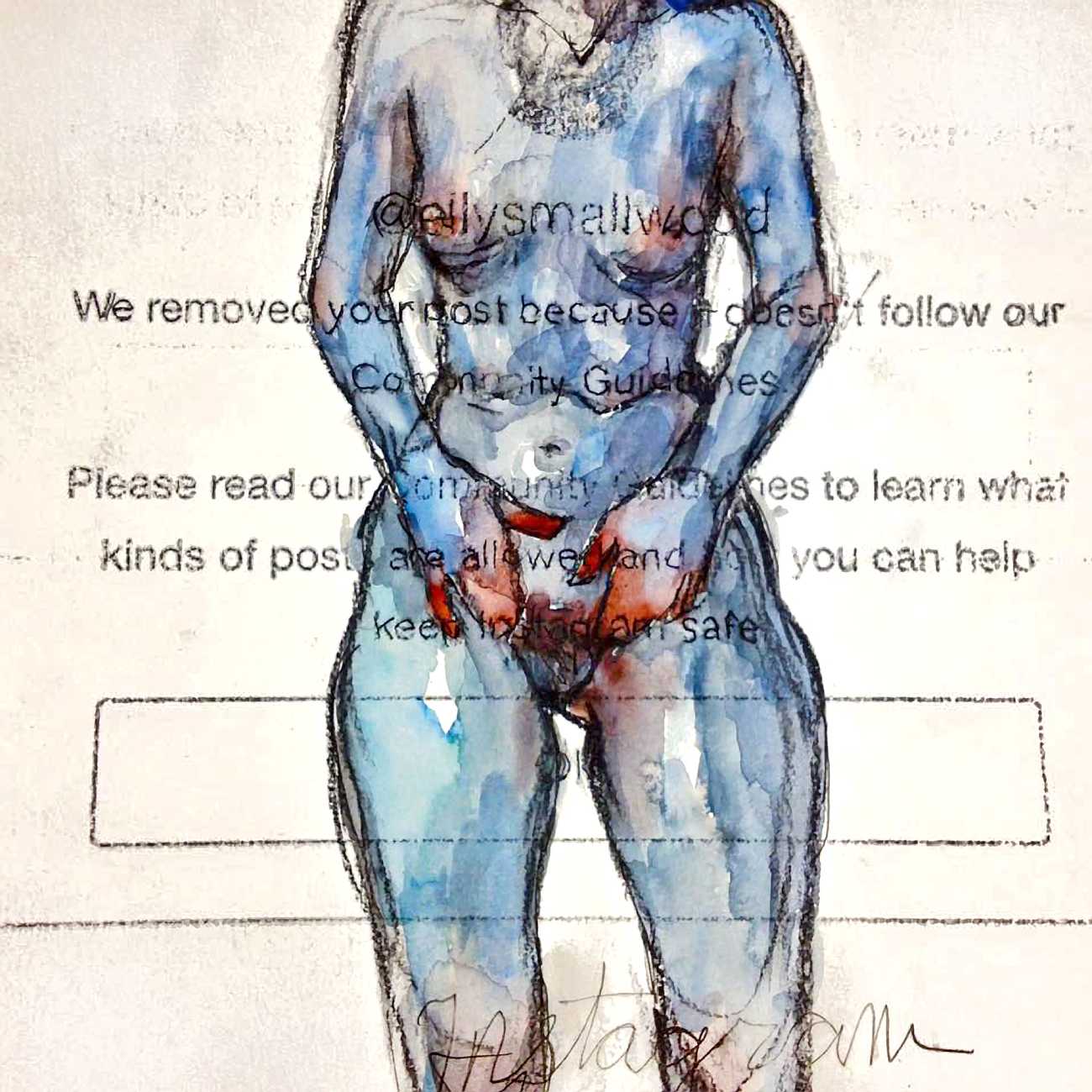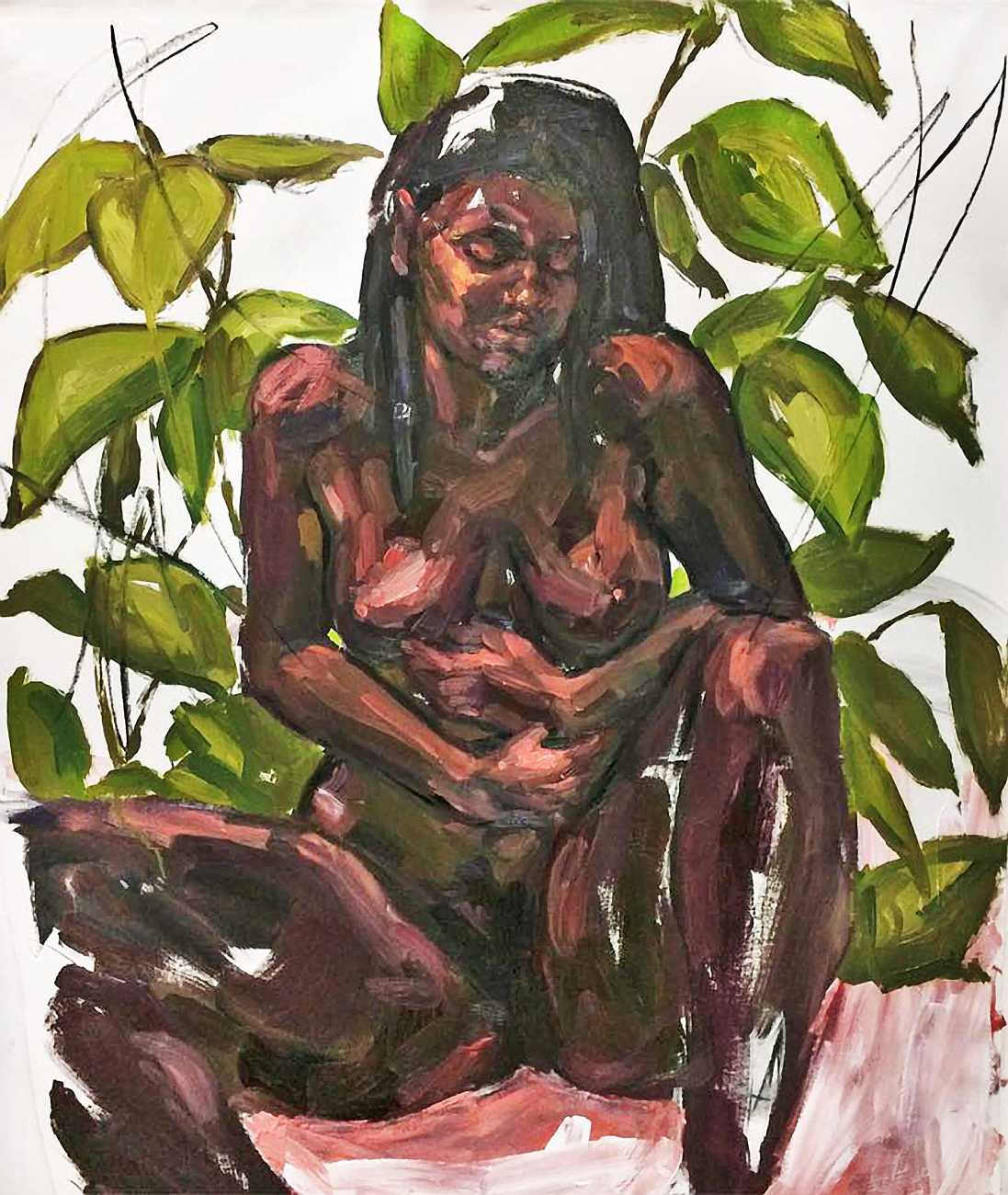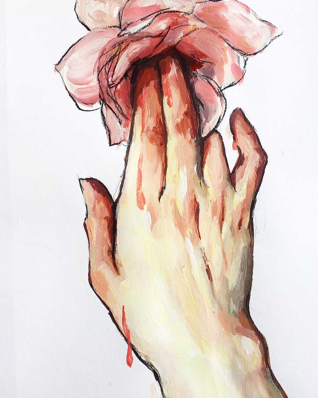 As fellow artist Riddhi Kanetkar has written, ‘I love the way in which Smallwood paints the female body; she uses a variety of body types that deviate from the traditional female body that is often constructed under the male artistic gaze. In particular, Smallwood’s amalgamation of flowers, superimposed onto a figure of the female body, both enhances the delicacy of it, whilst the bold outline attributes it with a degree of agency and power. The brush strokes are big, bold, and encompass the fluidity and ever-changing nature of the body – it is never static. Smallwood uses expressionism as a medium to convey her ideas; her work therefore reflects her own perceptions of femininity and female sexuality. This underpins the very notion of feminism – the fact that there is no one set of images that represent women’s experience, but rather it is an expression of all our individual thoughts and experiences. Her work demonstrates how art can be a powerful tool to express our identity.’