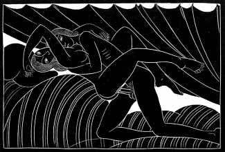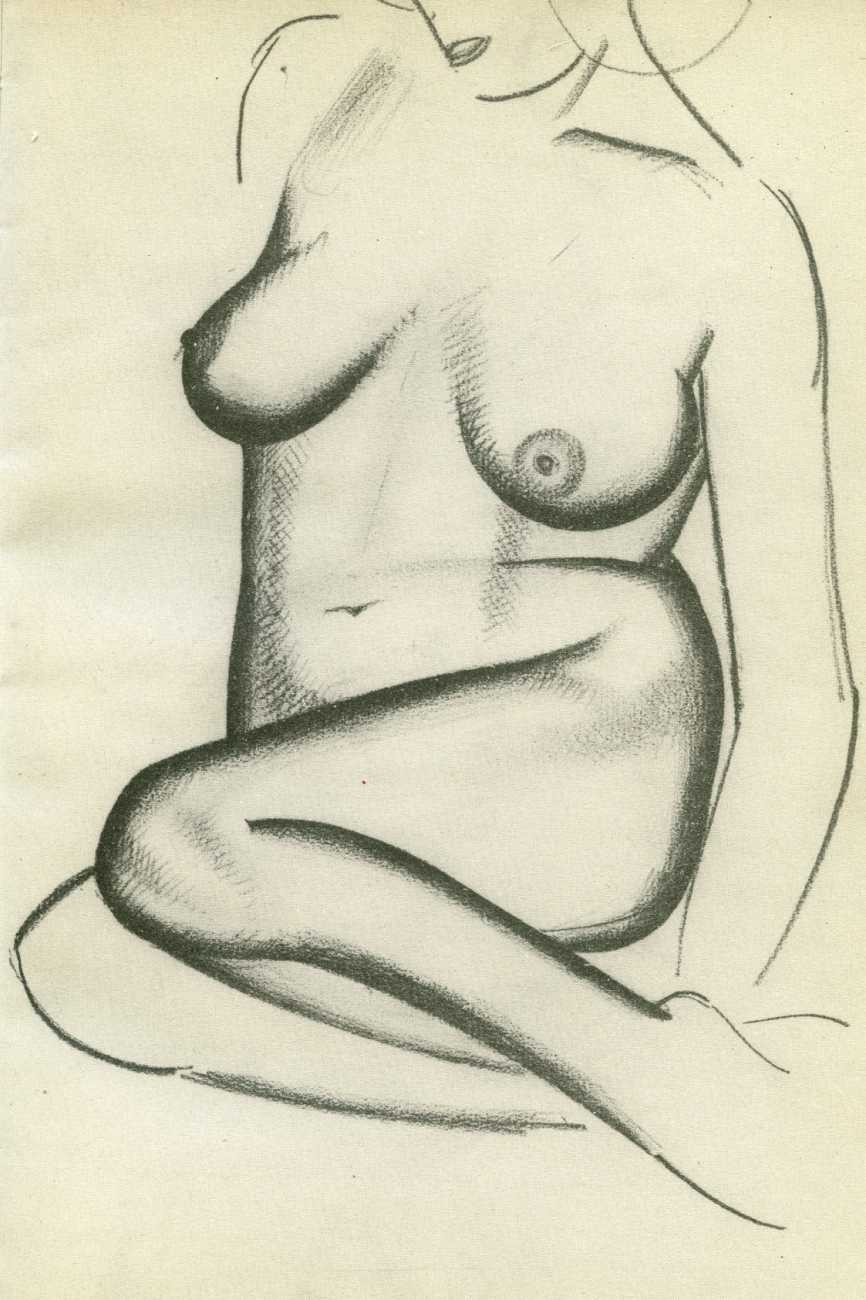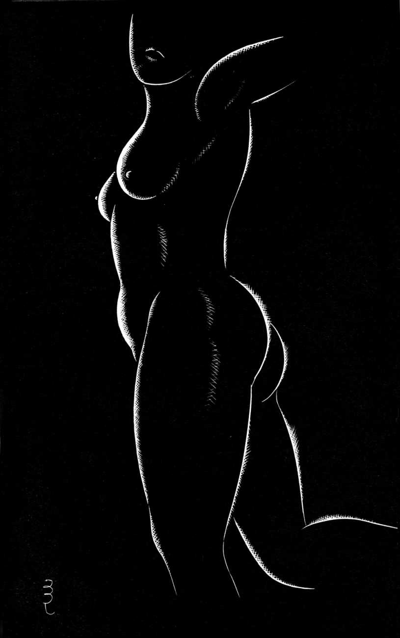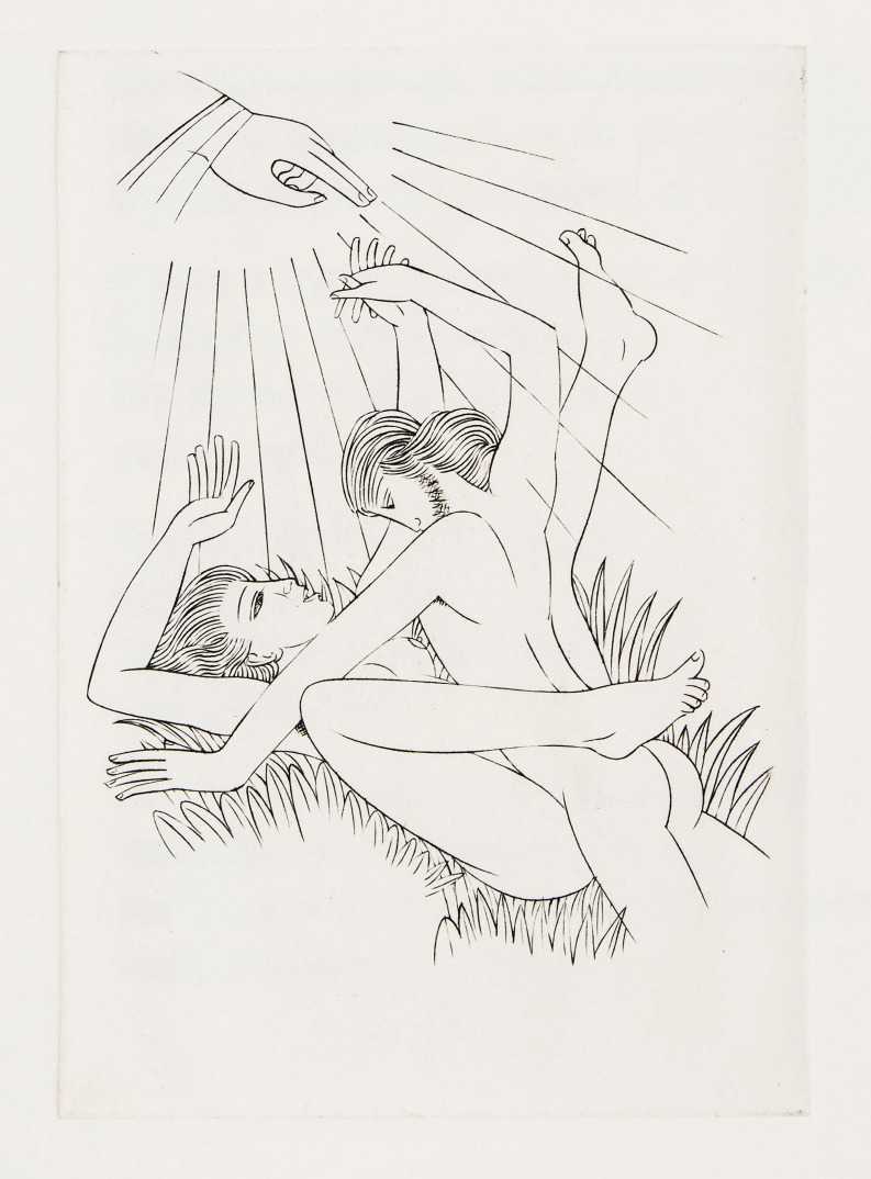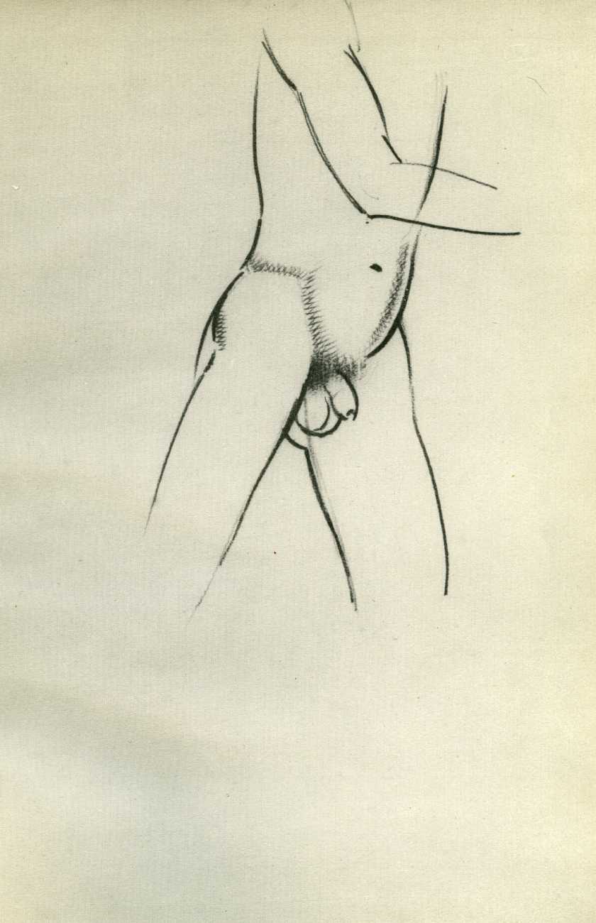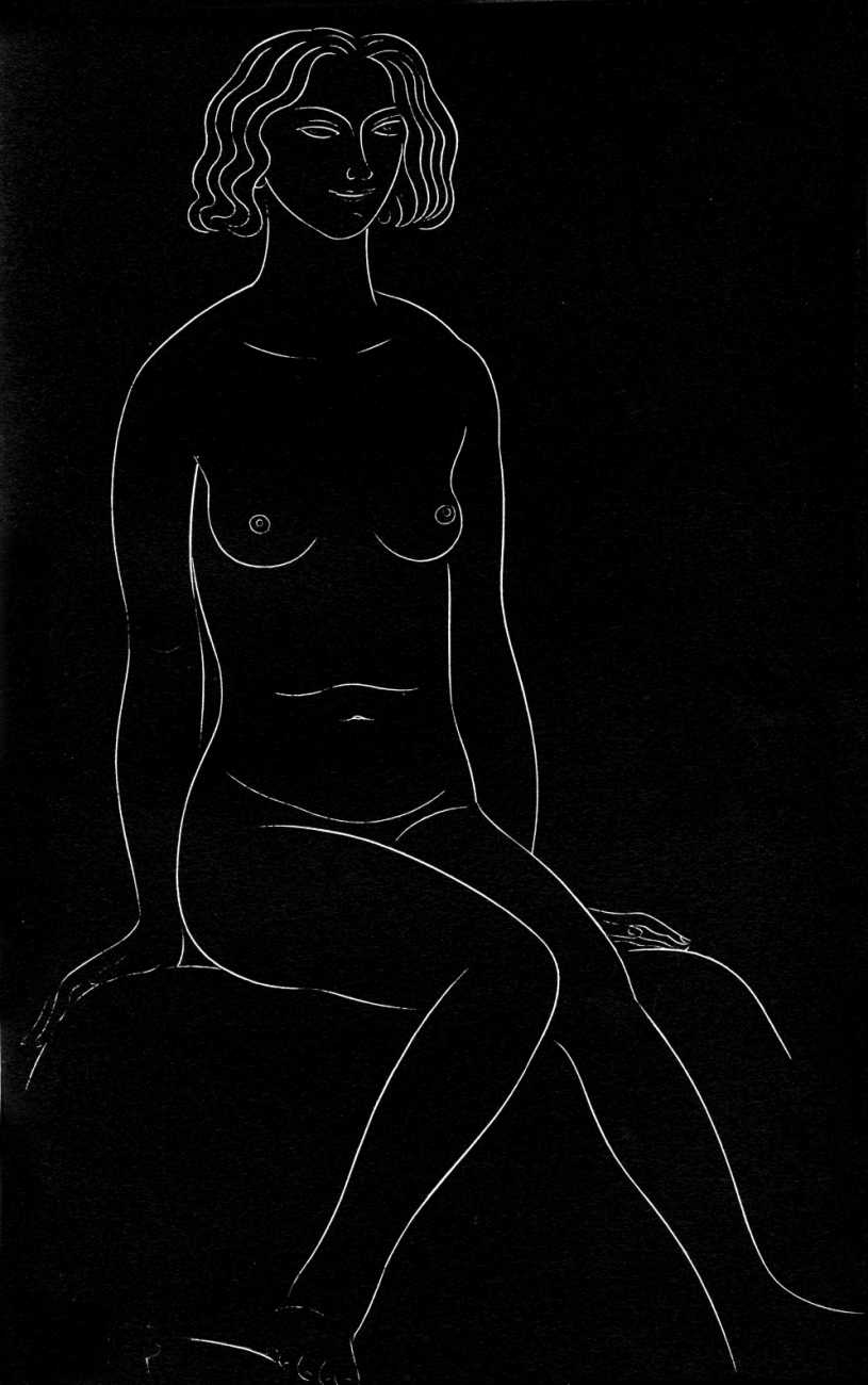 Eric Gill’s life and work is well-documented, especially by his honest and sympathetic biographer Fiona MacCarthy (Eric Gill, Faber, 1989) and by Malcolm Yorke (Eric Gill: Man of Flesh and Spirit, Constable, 1981). He was a formidable sculptor and graphic designer, and his timeless typefaces are still in everyday use. His skills, though, were as a designer rather than as an artist; when working in two dimensions on paper his medium was the clean line rather than subtle shading and colour. He had the ability to suggest skin forms and contours with two or three lines, and even though his proportions were sometimes exaggerated and stylised his naked human bodies are entirely believable, his relationship with his models all the more immediate for knowing that he regularly, if inappropriately, crossed the boundary between model and lover.