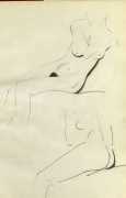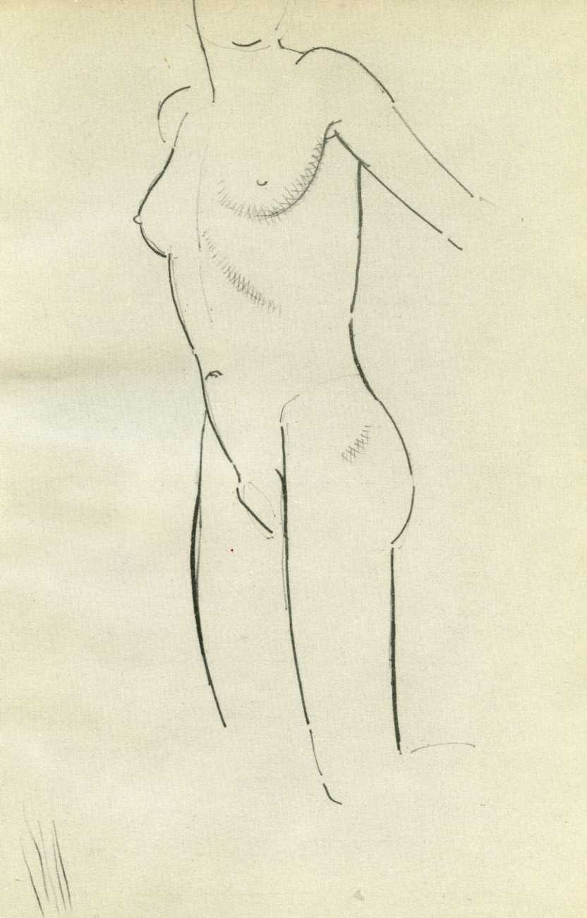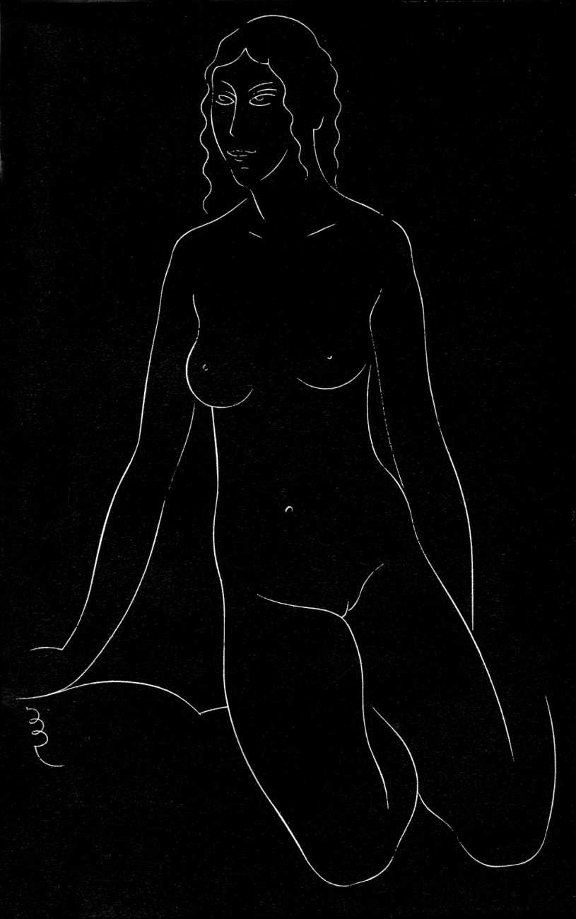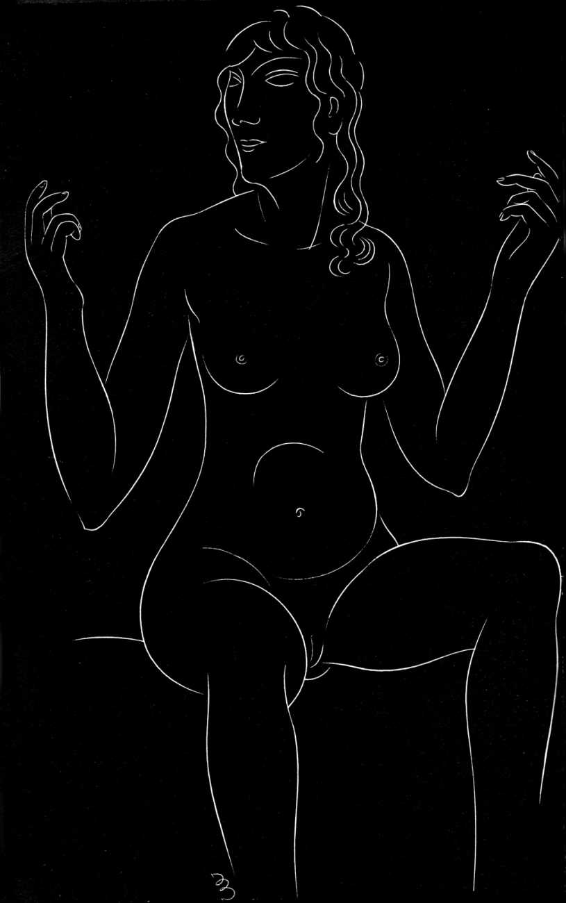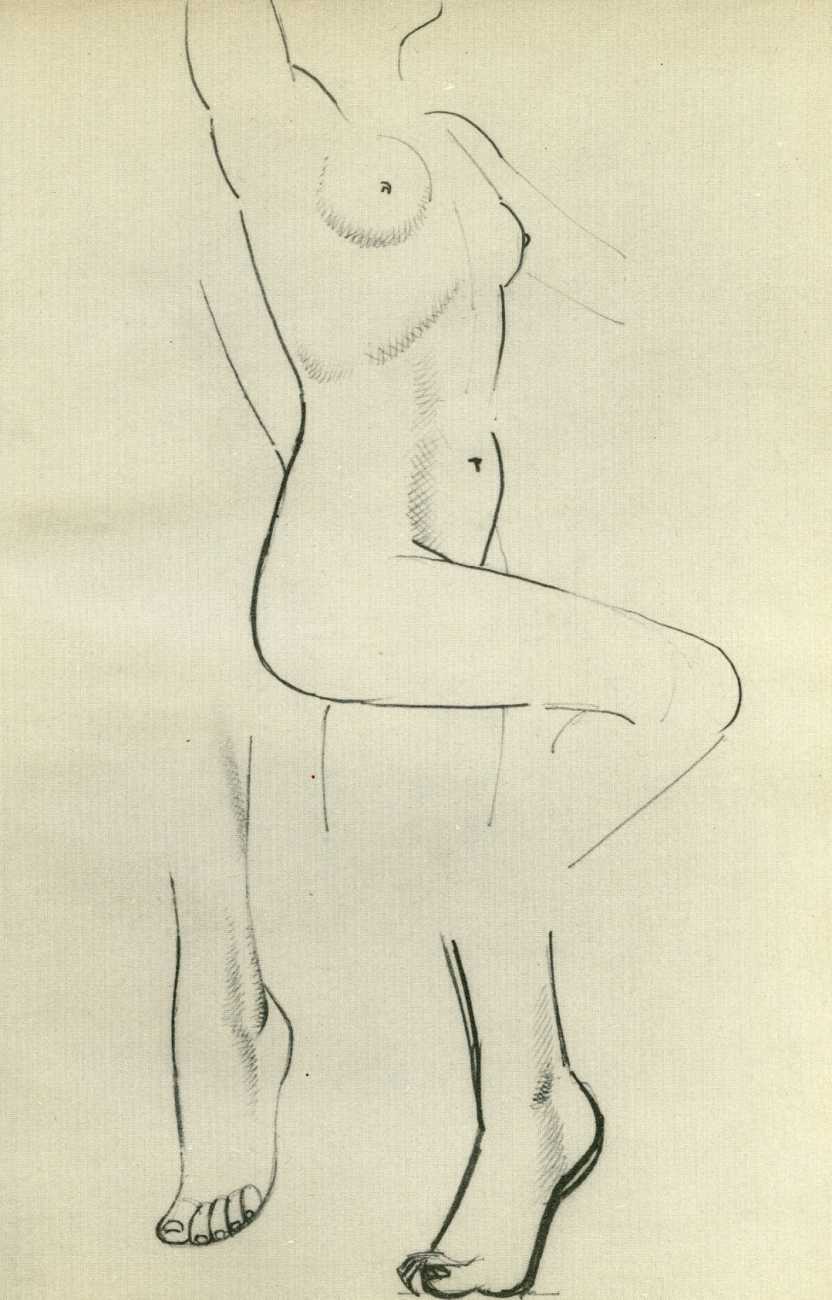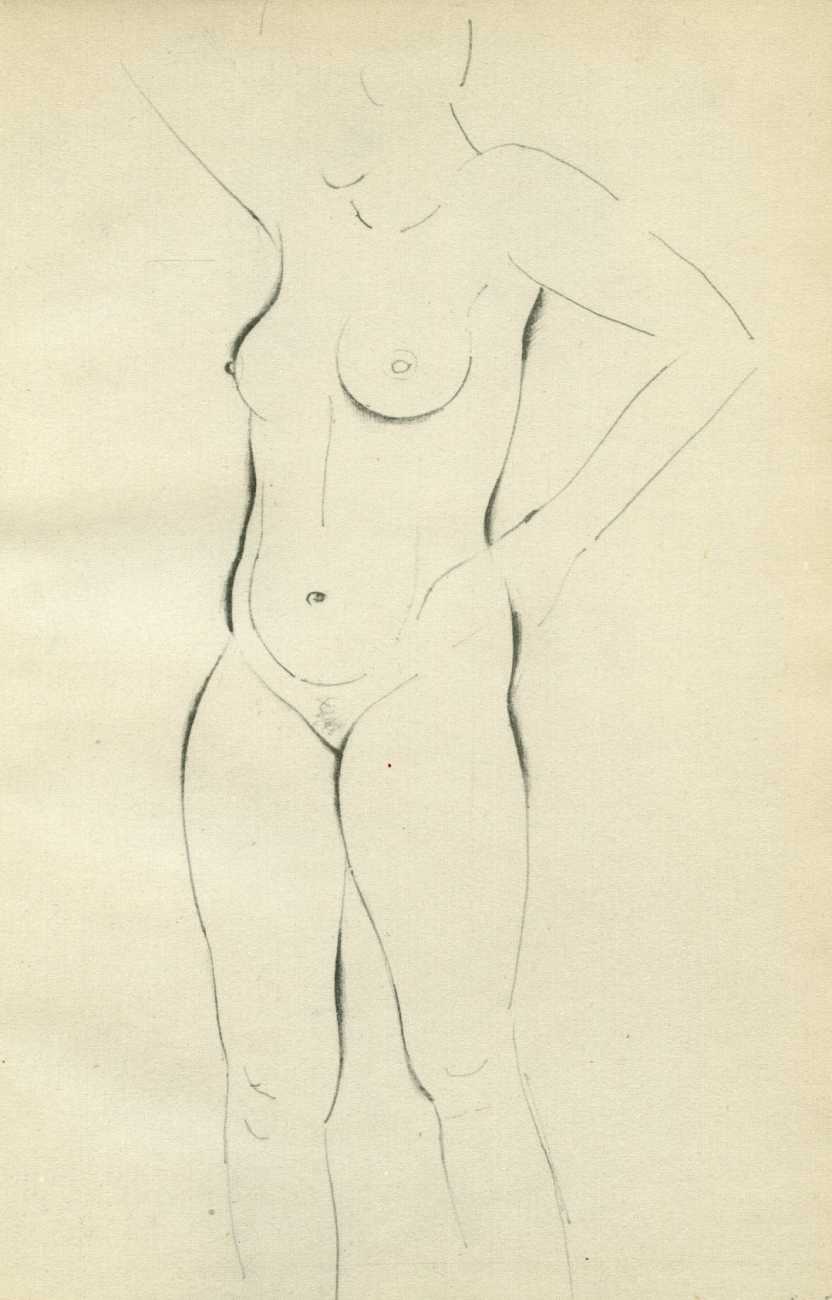 Eric Gill’s life and work is well-documented, especially by his honest and sympathetic biographer Fiona MacCarthy (Eric Gill, Faber, 1989) and by Malcolm Yorke (Eric Gill: Man of Flesh and Spirit, Constable, 1981). He was a formidable sculptor and graphic designer, and his timeless typefaces are still in everyday use. His skills, though, were as a designer rather than as an artist; when working in two dimensions on paper his medium was the clean line rather than subtle shading and colour. He had the ability to suggest skin forms and contours with two or three lines, and even though his proportions were sometimes exaggerated and stylised his naked human bodies are entirely believable, his relationship with his models all the more immediate for knowing that he regularly, if inappropriately, crossed the boundary between model and lover.