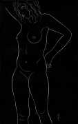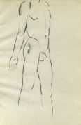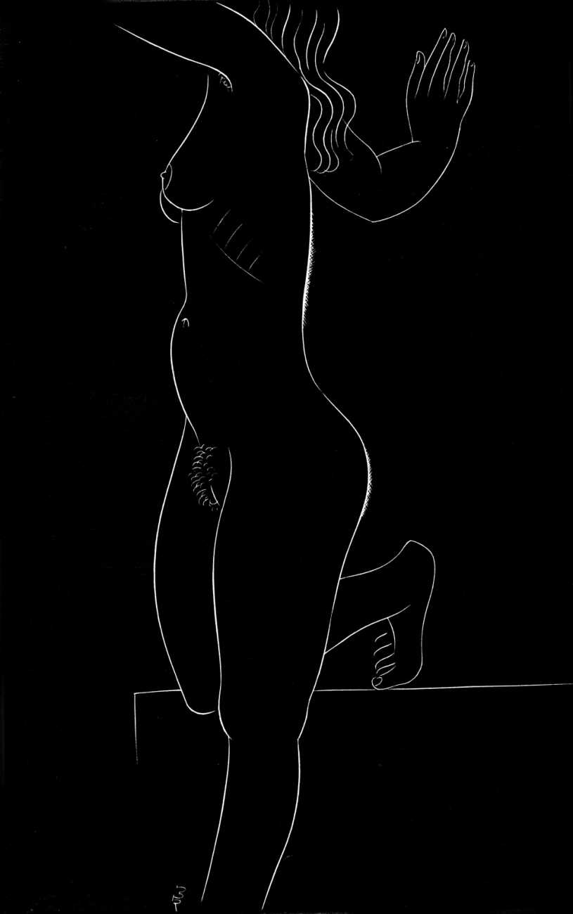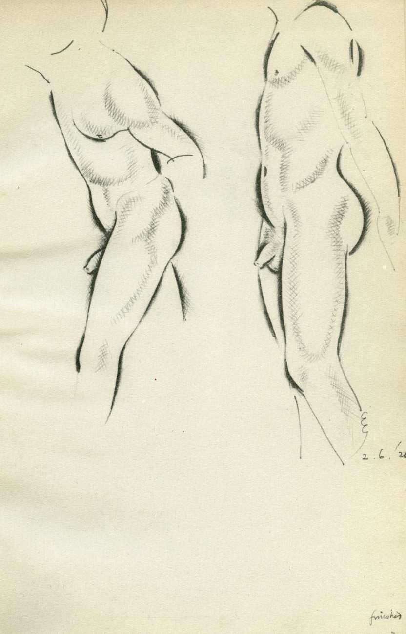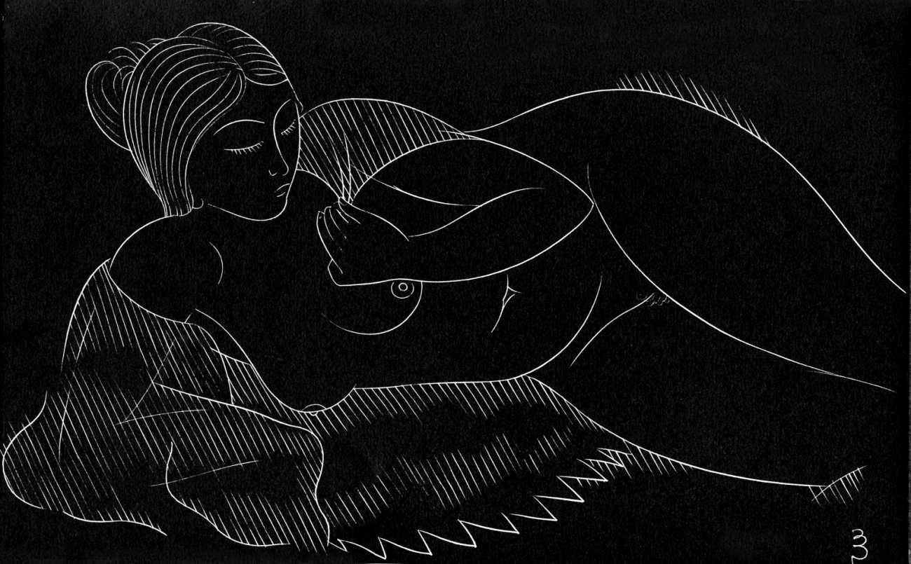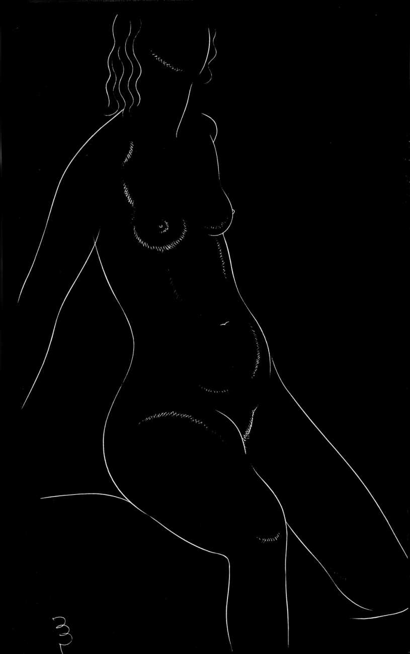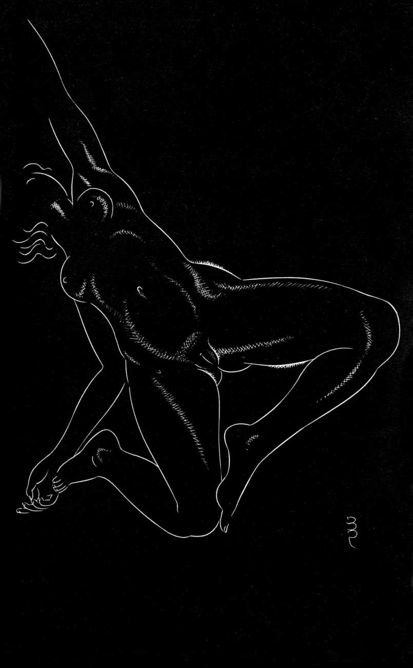 Eric Gill’s life and work is well-documented, especially by his honest and sympathetic biographer Fiona MacCarthy (Eric Gill, Faber, 1989) and by Malcolm Yorke (Eric Gill: Man of Flesh and Spirit, Constable, 1981). He was a formidable sculptor and graphic designer, and his timeless typefaces are still in everyday use. His skills, though, were as a designer rather than as an artist; when working in two dimensions on paper his medium was the clean line rather than subtle shading and colour. He had the ability to suggest skin forms and contours with two or three lines, and even though his proportions were sometimes exaggerated and stylised his naked human bodies are entirely believable, his relationship with his models all the more immediate for knowing that he regularly, if inappropriately, crossed the boundary between model and lover.
