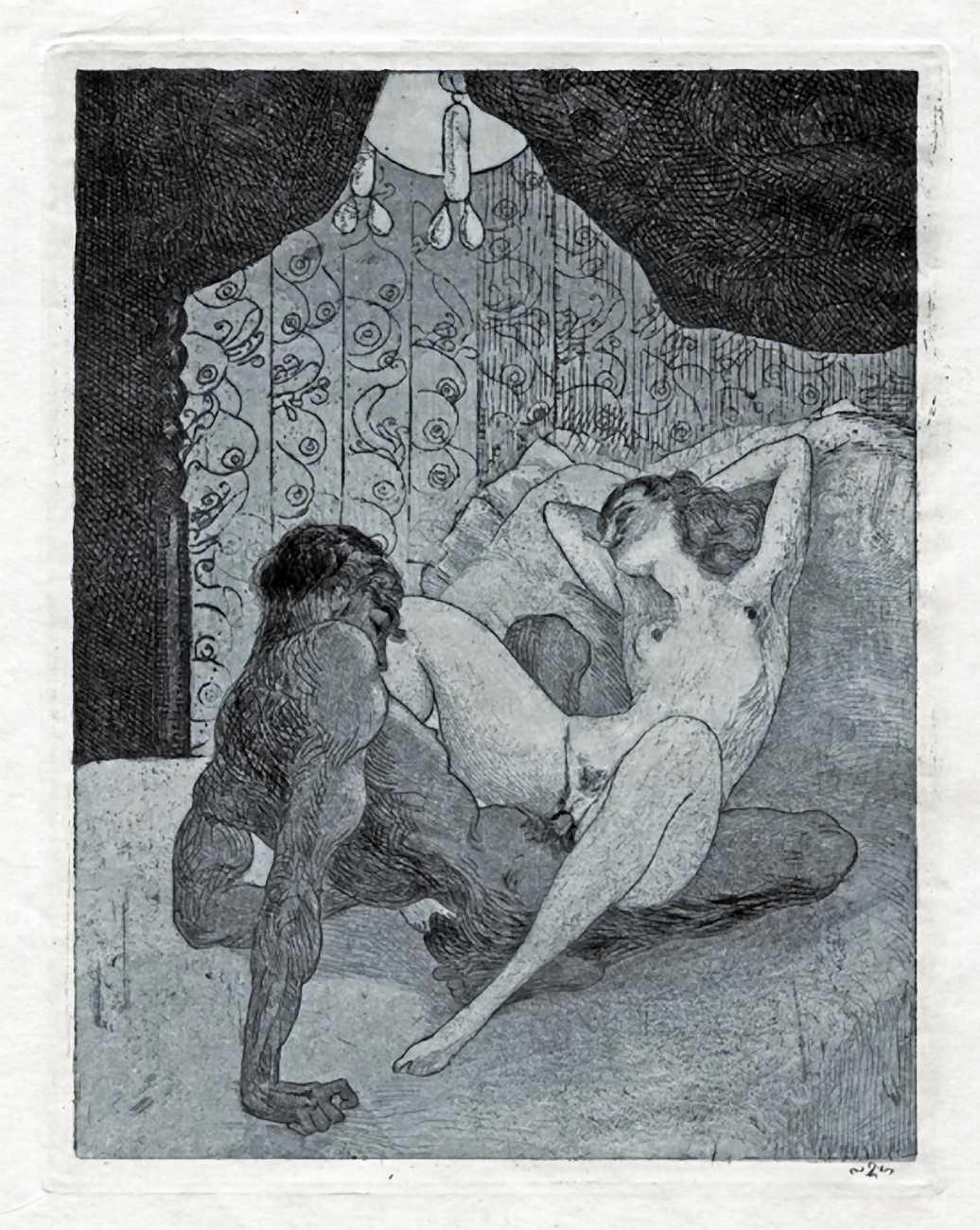 As well as painting, Lamm was also a competent engraver, producing a portfolio of six etchings based on German composers as well as the erotic portfolio we show here.