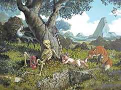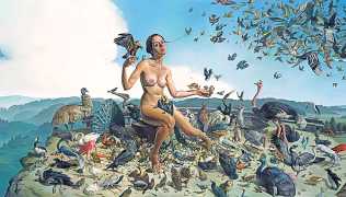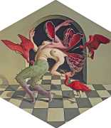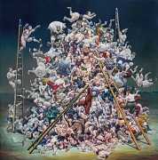 Creating inventive imagery ranging from panoramic to intimate, Sandberg pushes the skilful illusionism of master painting to the contemporary edge of magical realism. Sandberg’s earlier work depicted secular scenes of vice and virtue from a standpoint that human nature is inherently flawed. More recently, these fundamental flaws in life have continued to draw Sandberg to dissect and expose pieces of human nature. His skilfully crafted images, both miniature and larger than life, reveal the unexpected way in which imperfection makes life interesting. While beauty remains a constant component of Sandberg’s work, he contrasts it with the unsettling and unsightly elements of imaginary worlds that hinge, unsettlingly, on the verge of our own.