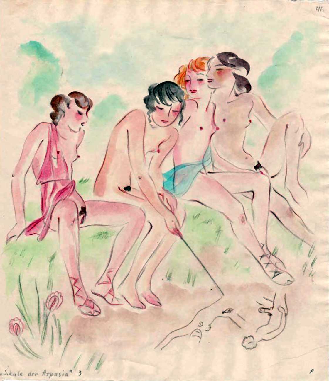 The German illustrator Erika Plehn takes her place here as the creator of a couple of wonderfully vivid erotic sequences she made in her early twenties, shortly before marrying a priest and settling down to a more apparently conventional, and we hope satisfied, life. She was born Erika Pinkus in the city of Breslau (now the Polish city of Wrocław), and studied art in Berlin. We know nothing of her personal life beyond the fact that she married Gerhard Plehn (1908–87) some time around 1930, and from 1937 to 1945 they lived in the north German village of Gross Engelau before returning to Berlin. As far as we can tell they had no children.