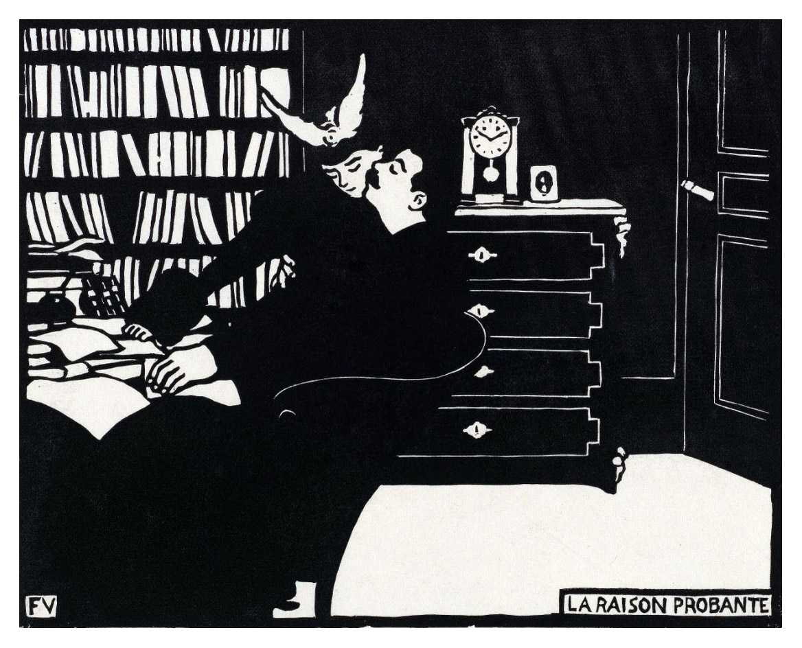 Born Félix Edouard Vallotton in Lausanne, in 1882 he moved to Paris, where he studied under Jules Joseph Lefebvre at the Académie Julian. Initially producing portraits grounded in the academic tradition, Vallotton was inspired by works he observed at the Louvre by Hans Holbein, Jean-Auguste-Dominique Ingres and Albrecht Dürer. A decade later in 1892, Vallotton had become a part of the milieu of artists known as Les Nabis, which included Pierre Bonnard, Maurice Denis, and Édouard Vuillard. The ideas espoused by the Nabis coincided with Vallotton’s own interests, as he had already begun producing woodcuts inspired by the flat colours and silhouetted forms of Japanese ukiyo-e prints.