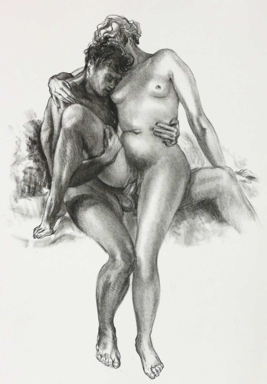 Alongside the mainstream, businesslike but not particularly notable, landscapes and architectural drawings, however, there was another string to Dantan’s art that few knew about – his skill at drawing lively and very convincing sex scenes. As well as being an accomplished artist, he also trained himself in lithography, so produced the two sets of erotic prints shown here himself, both in very small quantities. As well as his monochrome work, a few of his efforts at colour work have also survived.
