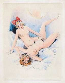 Fernand Dantan is one of those talented erotic artists who has almost disappeared without trace, even though he died less than twenty years ago; this is maybe not surprising given how little of his work has survived, but he deserves some recognition. He grew up in the central French region of Allier, in the small town of La Ferté-Hauterive, and never left the Auvergne apart from military service. A teacher and self-trained artist, a formative experience was being taken prisoner-of-war by Germany in 1940 and spending more than two years in the Stalag VIa camp at Hemer near Iserlohn; on his release in 1943 he wrote and illustrated a booklet about his experiences titled Ceux du Stalag (We of the Stalag).