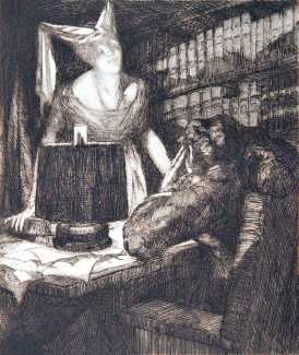Best known for his etchings, his first book commission was for Pierre Dominique’s Chroniques Corses (Corsican Chronicles) in 1926, followed by Pierre Louÿs Psyché in 1927, Henri de Régnier’s Le billet de Lucinde (Lucinda’s Letter) in 1928, and Honorée de Balzac’s Le Colonel Chabert (Colonel Chabert) in 1929. 1929 also saw the publication of a Hertenberger-illustrated edition of Joris-Karl Huysmans’ controversial 1891 novel about satanism, Là-bas (Down There), for which Hertenberger had produced a set of engravings three years earlier; when the book was published they were exhibited at the Salon des Humoristes.
