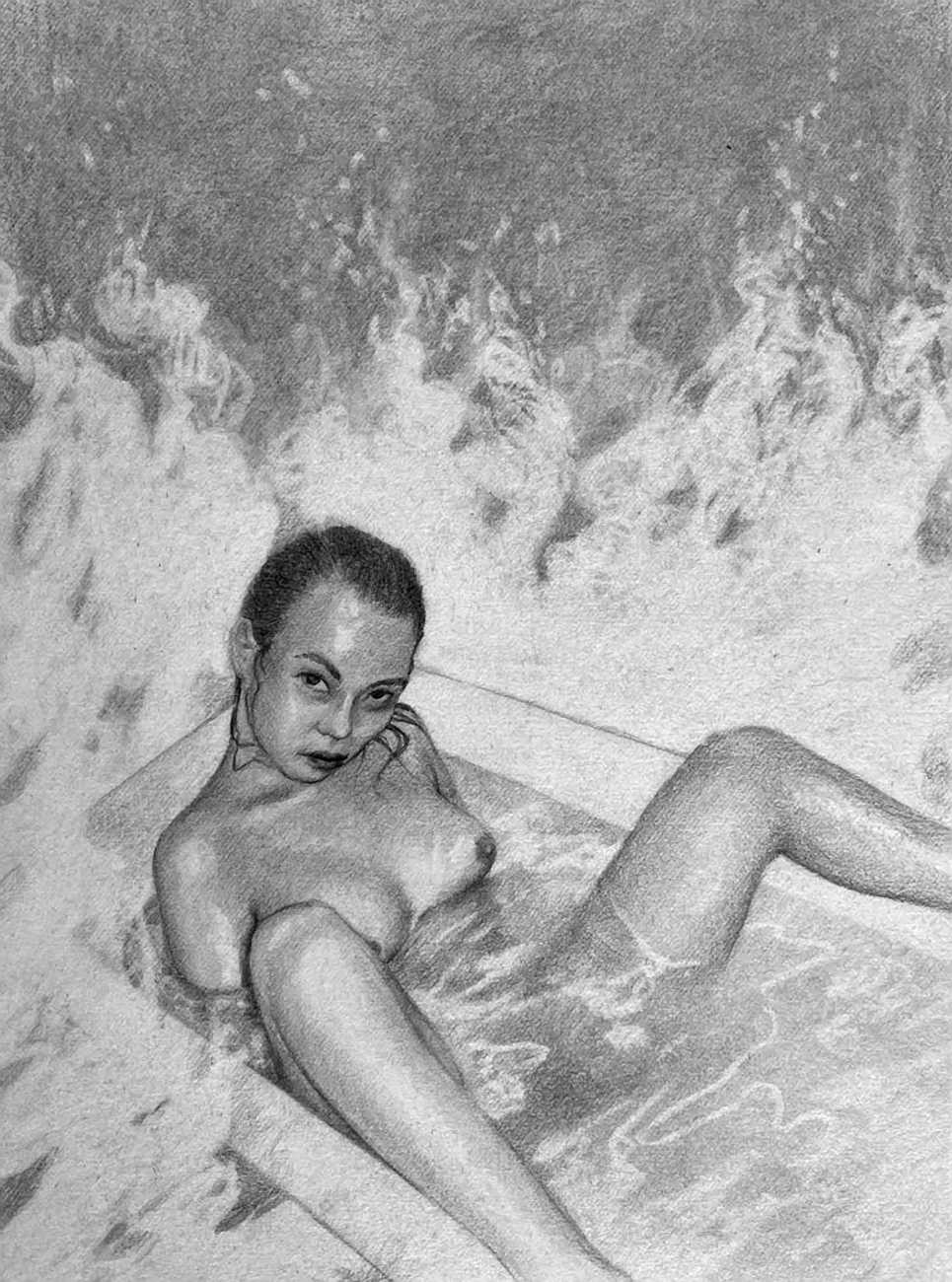The American artist Frances Waite grew up in the Lake Ontario shoreline city of Rochester, and after leaving high school studied art at the Pratt Institute in Brooklyn, New York. In 2015 she graduated with a Bachelor of Fine Arts in Drawing. A prolific and imaginative artist, her works on paper have been exhibited in the USA and in Europe, and she regularly posts new work online. Her subversive approach to photorealistic graphite drawing has been recognised in a growing number of publications, including Vogue, Playboy, Fukt and Vice. In 2018 Frances was included in Vogue’s ‘World 100’ as one of the most influential creators of the year.