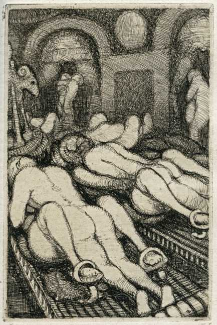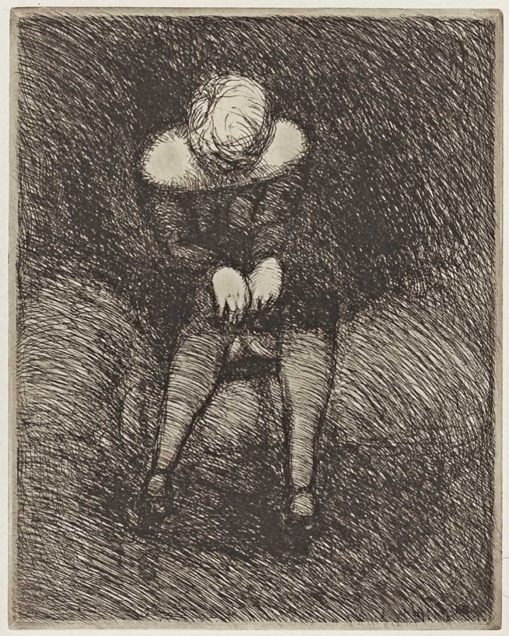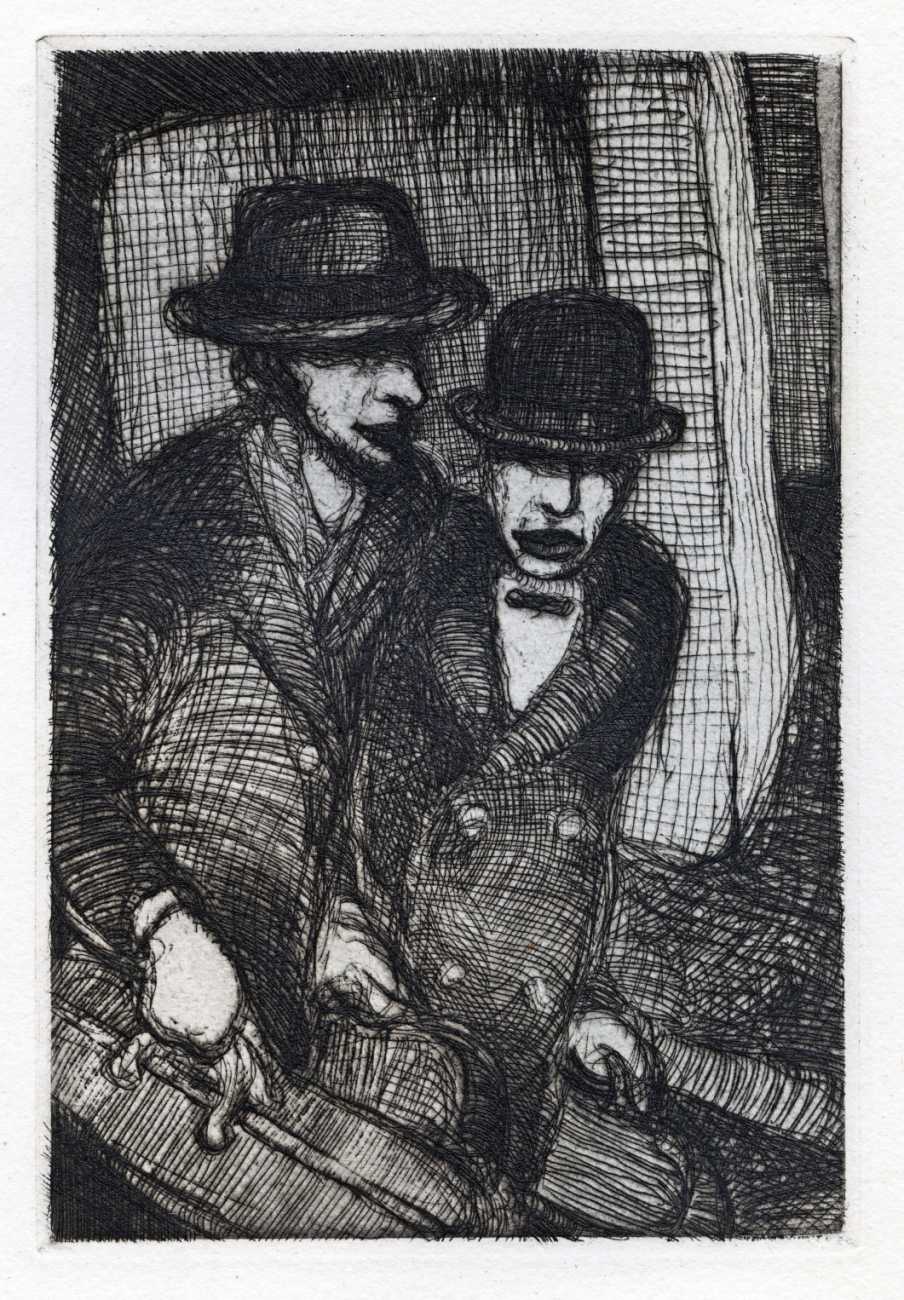 Towards the end of the war, in 1918, Frans de Geetere was living on a houseboat at Nieuwersluis south of Amsterdam, and working as a night porter at the William Arntz psychiatric clinic in Utrecht to make ends meet; he also met his partner May den Engelsen during this period. The grim darkness of war and his work with psychiatric patients seemed to underlie his move away from surreal fantasy to dark etchings; it probably also explains the couple’s decision to take their floating home away from wartime Holland and wend their slow way through the Dutch and French countryside to Paris, along with their art materials and a printing press to enable them to work on the way, and several cats. Early in 1920 the Marie-Jeanne arrived in Paris to drop anchor on the banks of the Seine in central Paris, at the Quai de Conti near the Pont Neuf, and this was to remain their home for nearly fifty years.