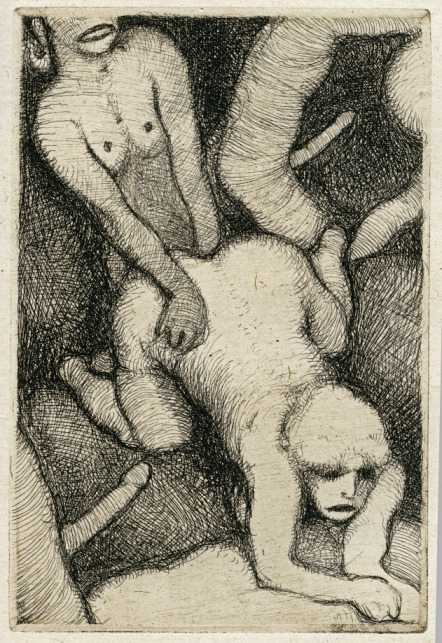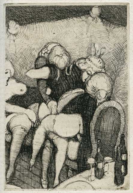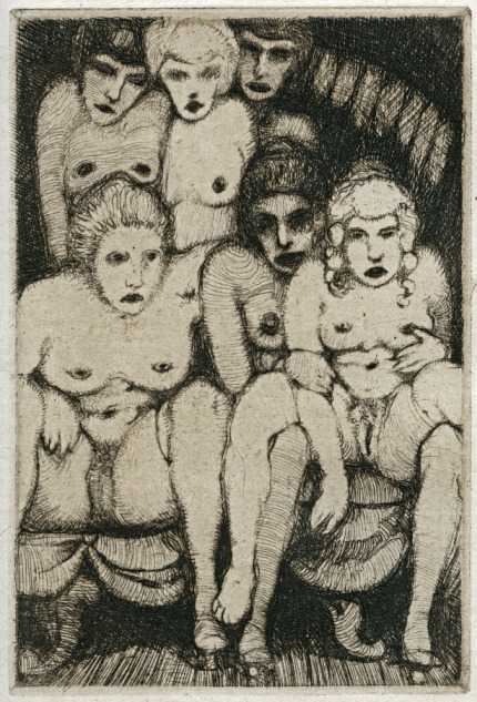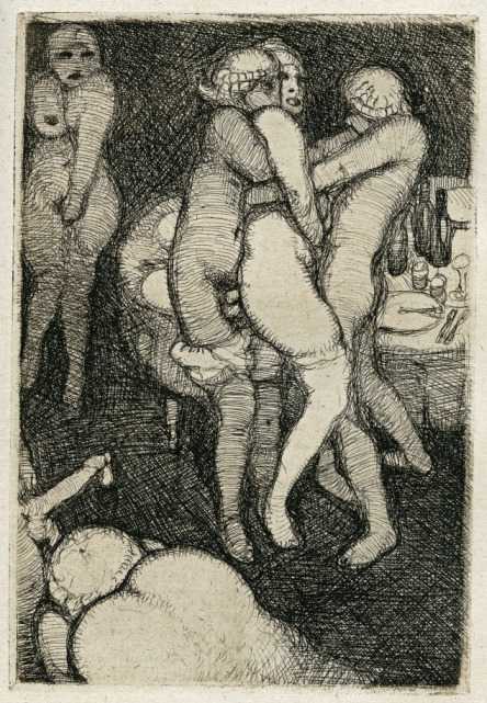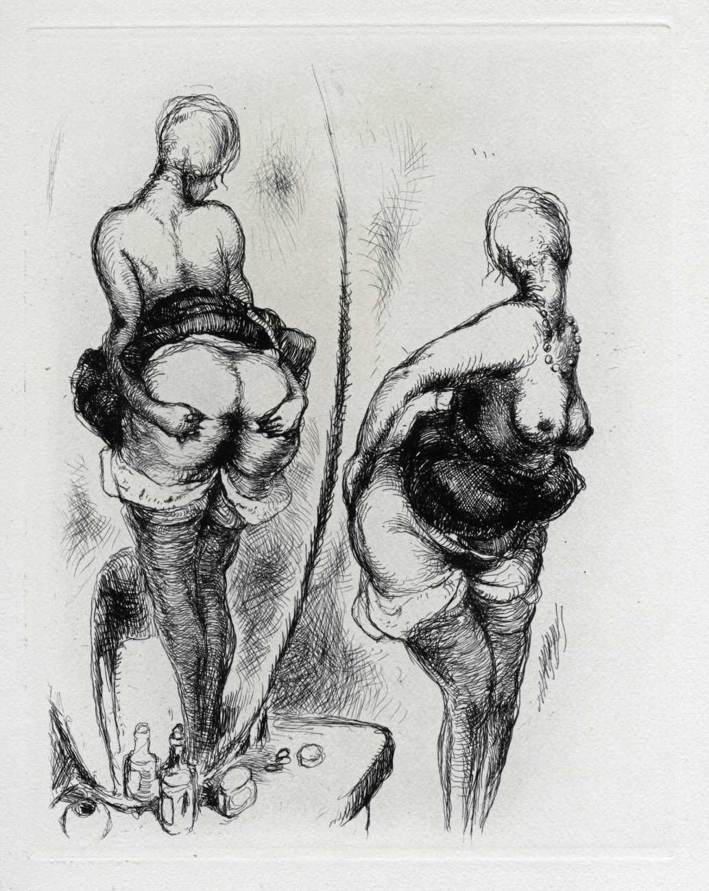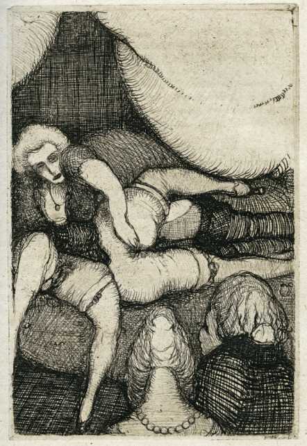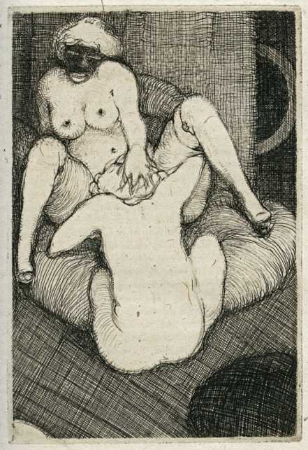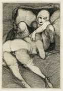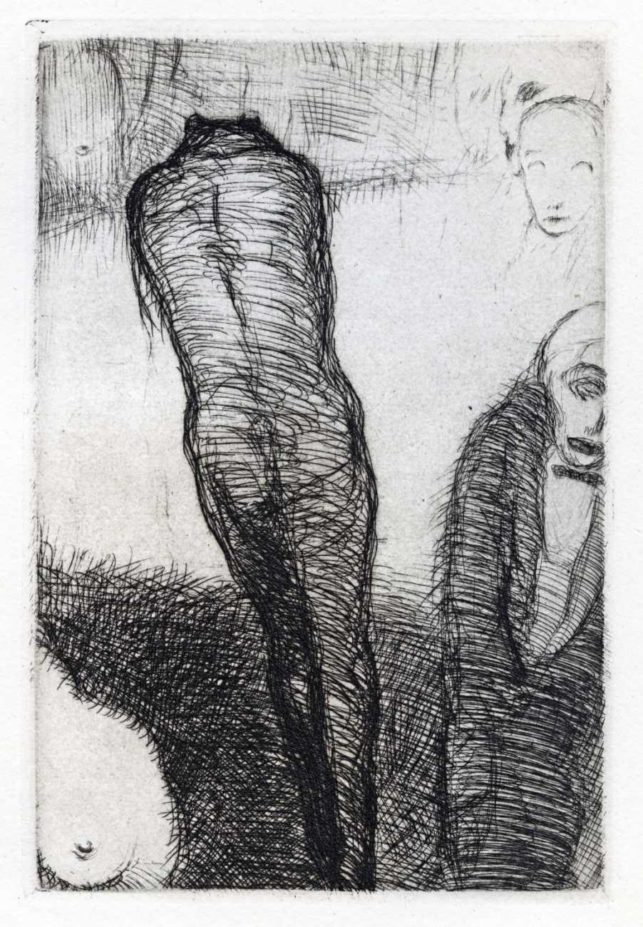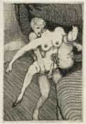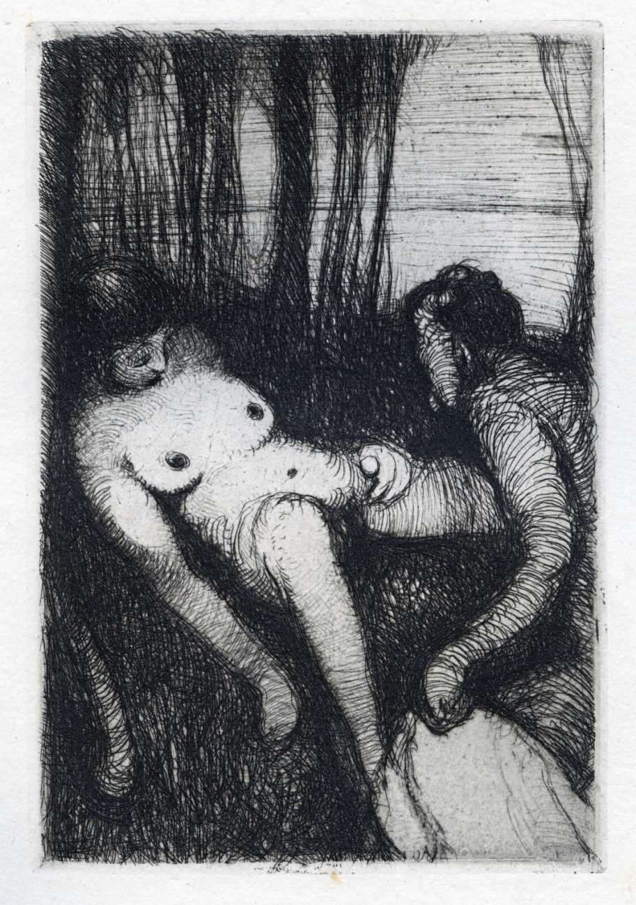 But Frans and May also had to live, and to keep food on the table worked hard on commissions both pedestrian (flowers and portraits) and experimental. It was in his engravings for books that Frans found his true métier, and fortunately the market in the mid-1920s was ripe for his edgy, dark, risqué prints. Commissions starting with Les amies (a joint project with May) in 1925 and continuing until the early 1930s kept his creative juices flowing. As well as the books, Frans produced many individual etchings which were sold to private collectors and selected Parisian galleries.