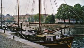 By the 1950s the world and Paris had changed, and Frans de Geetere’s dark etchings fell out of fashion. He turned to warmer paintings with some of the qualities of his surrealist period, and to paper sculptures. In the mid-fifties the Parisian authorities tried to ‘clean up’ the Seine by removing as many houseboats as possible, but Frans and May used a newspaper campaign to persuade the city that the Marie-Jeanne was a ‘cultural monument’ – which with hindsight it most certainly was. It was moved only in 1969 after Frans and May’s deaths.