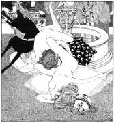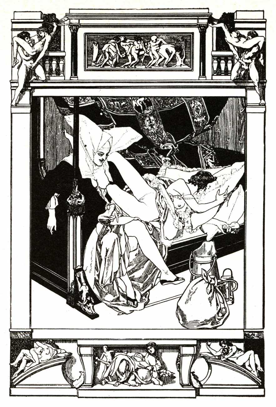 The combination of Franz’s brilliant draughtsmanship and design sense and his carefully-considered erotic imagination made his work eminently approachable and desirable, both as high-quality art and as a vehicle for exploring the limits of sexual experience. As well as exploring transgressive subjects such as bestiality and sado-masochism, his illustrations also contain warmth and humour, often displayed as much in the background detail as in the main characters.