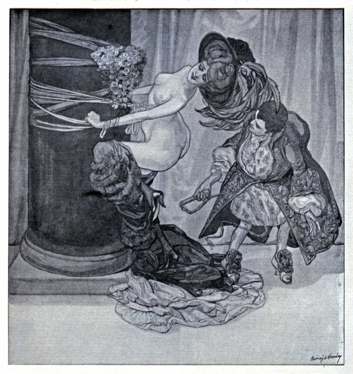 He came from an Spanish aristocratic family which had settled in Austria, and after leaving school studied art at the Viennese Academy with Eduard von Engerth. It took him some time to find his artistic feet, not helped by his father’s early death in 1888 and a short disastrous marriage to composer Johann Strauss’s daughter-in-law Alice Meyszner in 1896; during this period he concentrated mainly on designing decorative bookplates.
