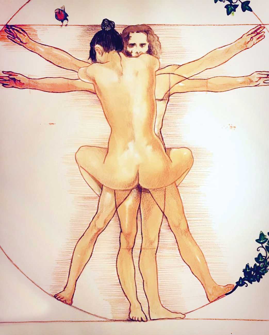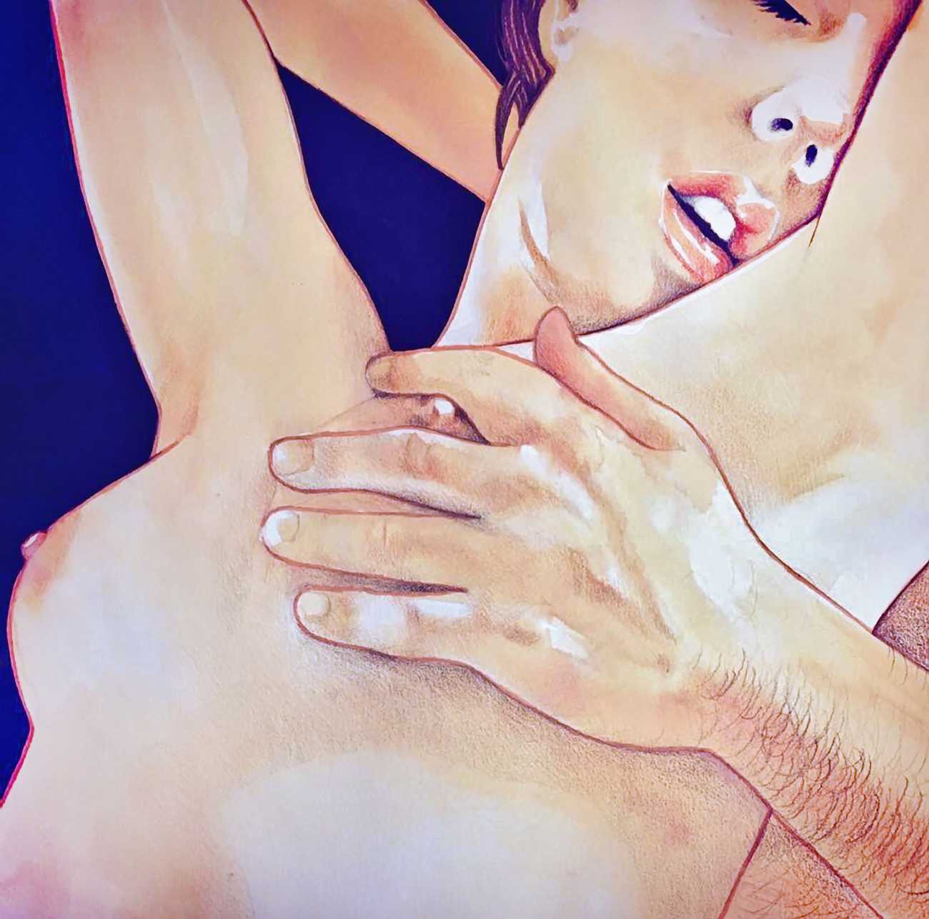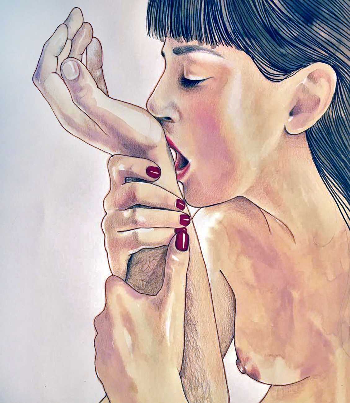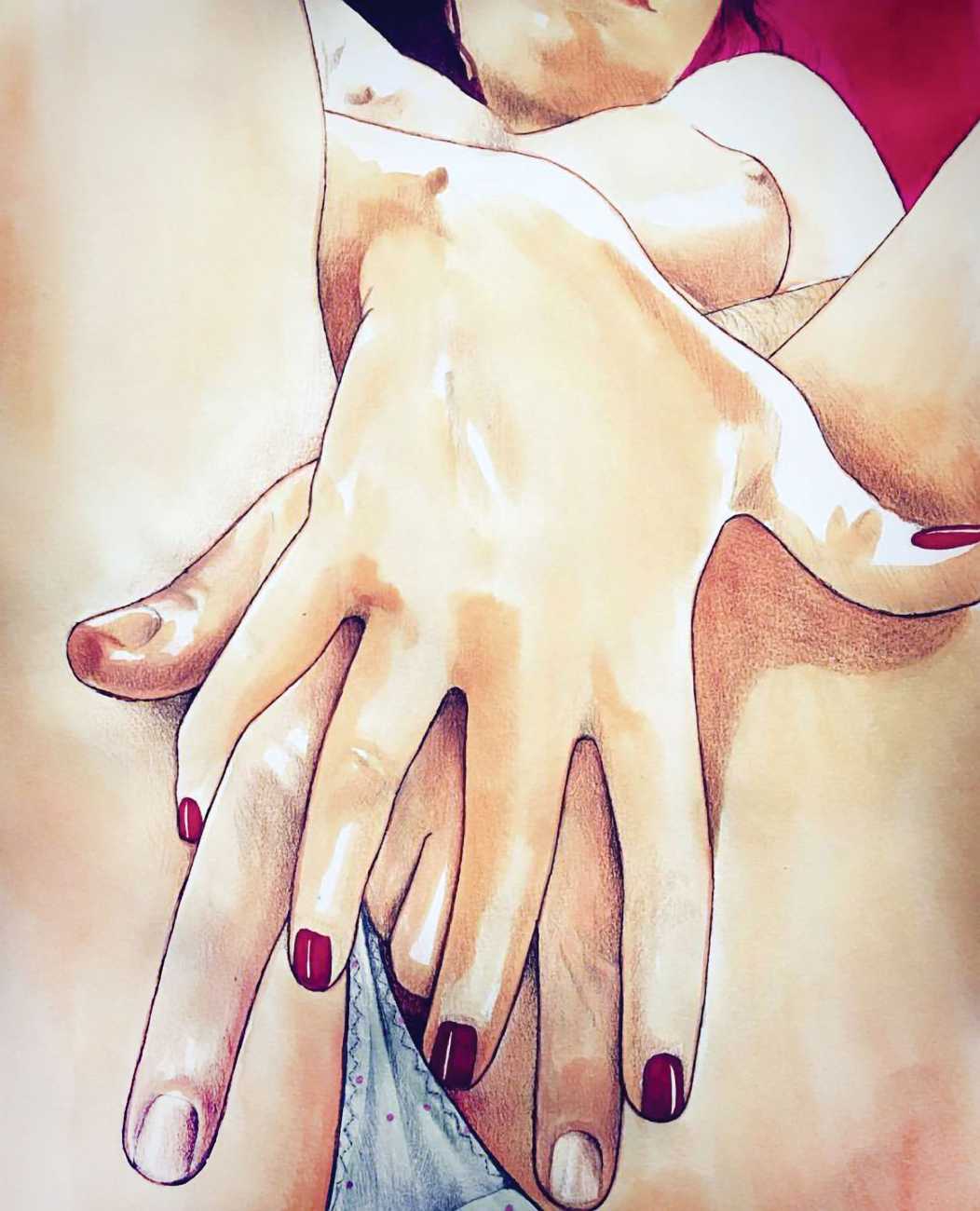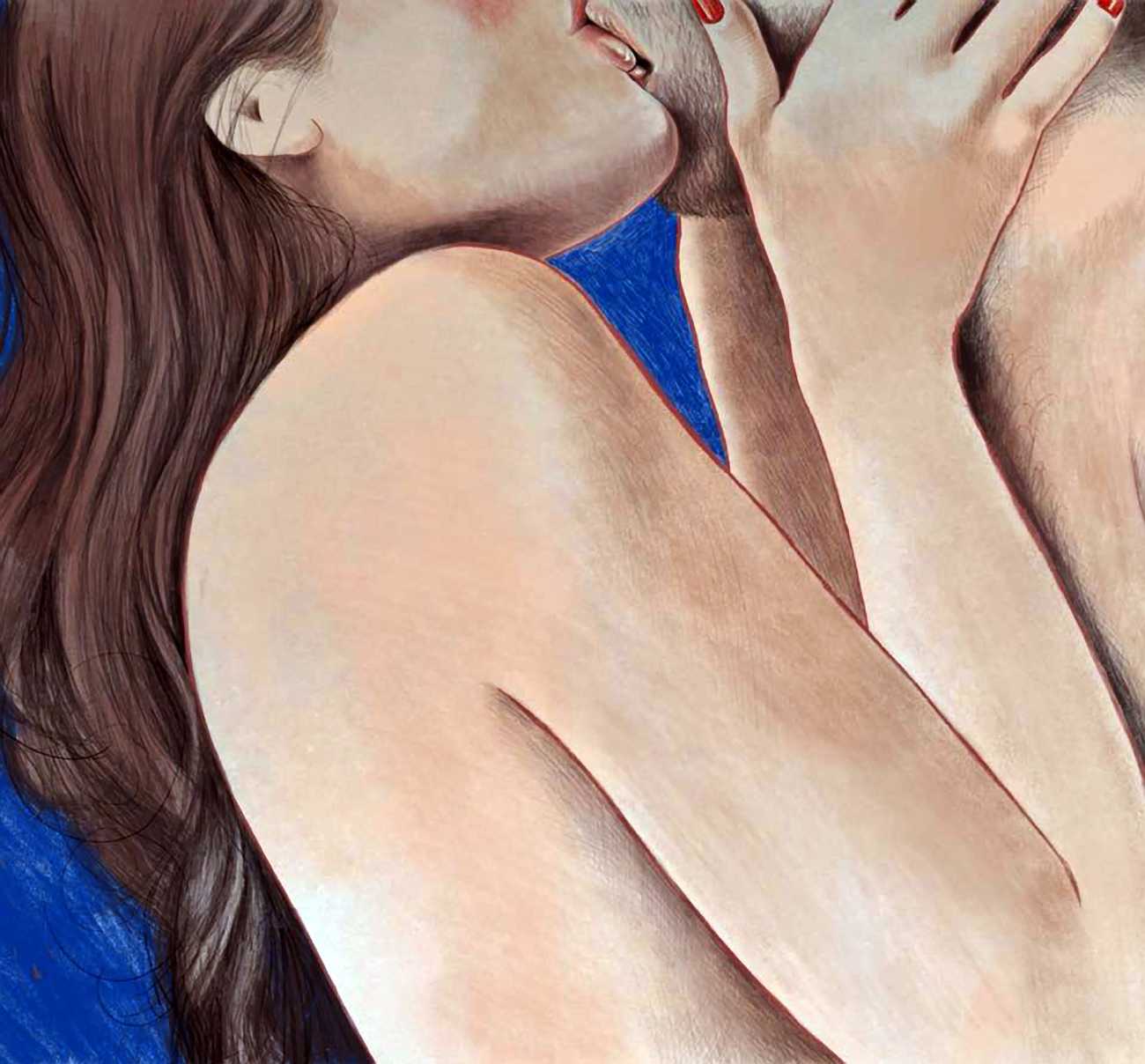 The young Italian artist Frida Castelli has gathered a prodigious and appreciative internet audience since she started posting her artwork online in 2017, and she now has a portfolio which includes prints and books as well as her trademark ink and watercolour paintings of a naked lover enjoying intimacy with herself and her partner.