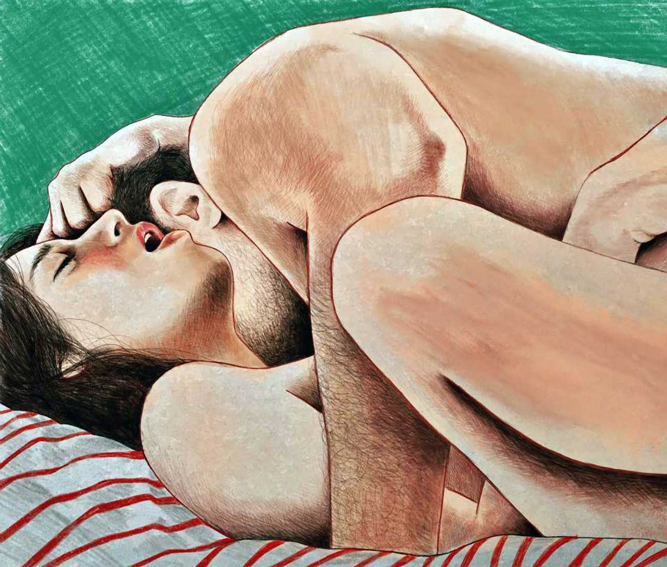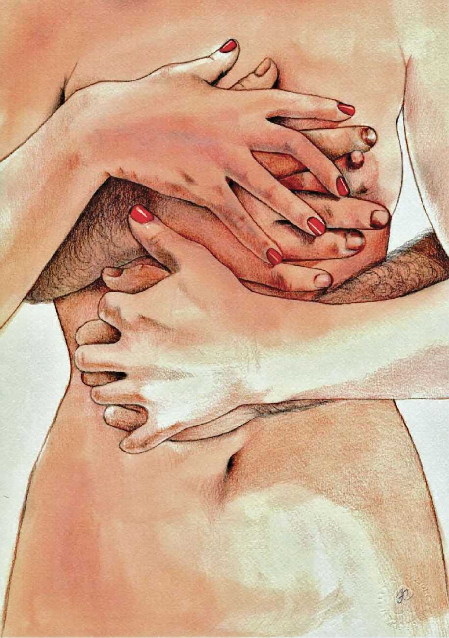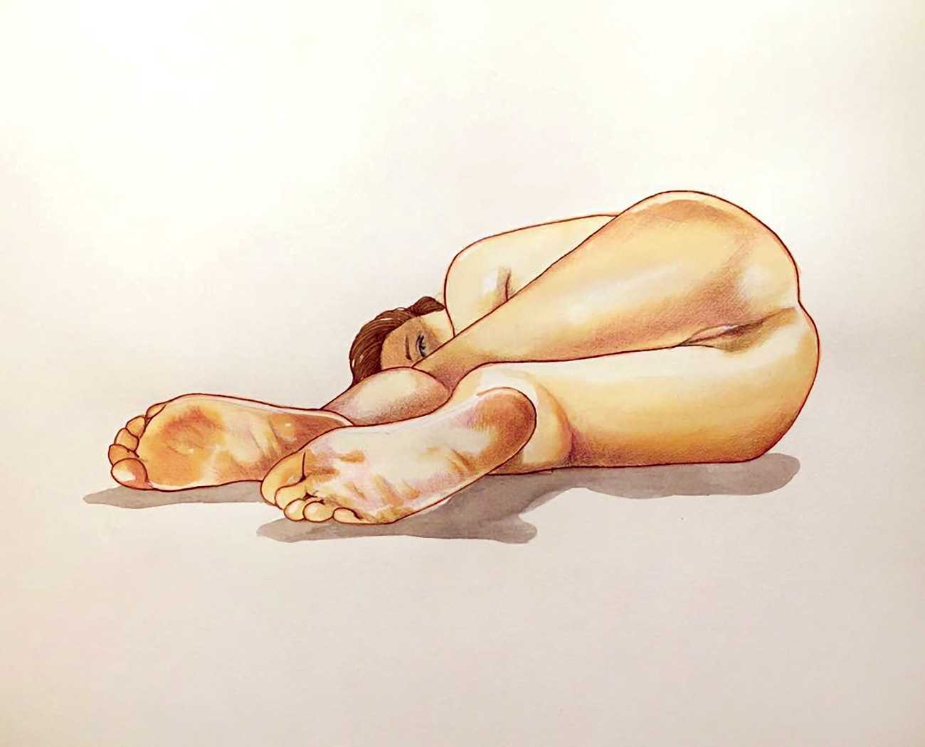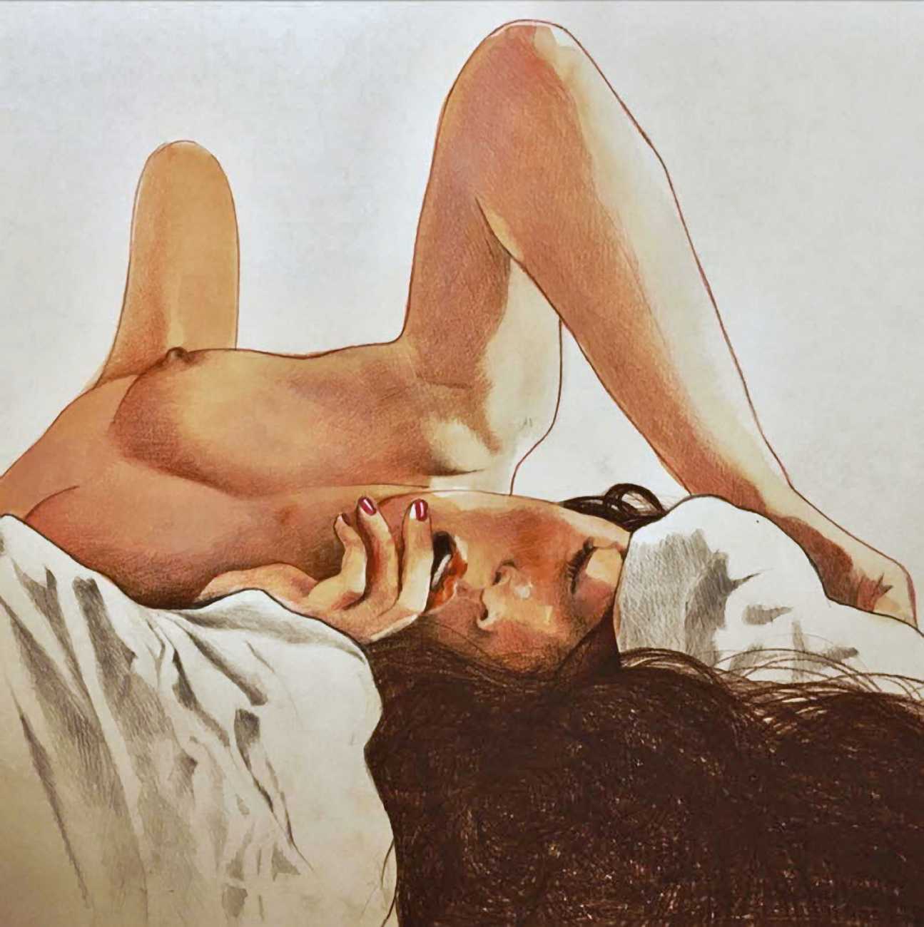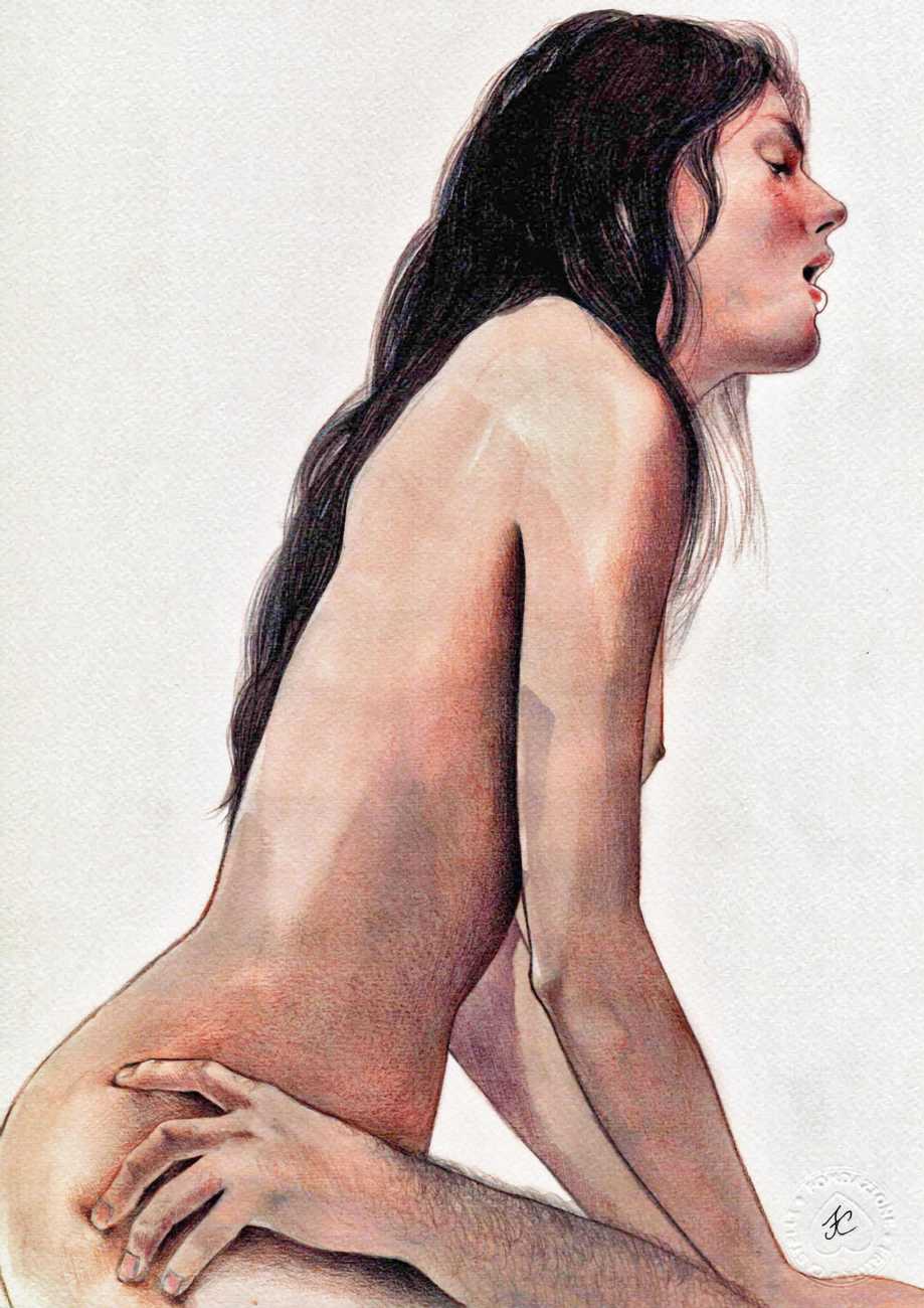 The young Italian artist Frida Castelli has gathered a prodigious and appreciative internet audience since she started posting her artwork online in 2017, and she now has a portfolio which includes prints and books as well as her trademark ink and watercolour paintings of a naked lover enjoying intimacy with herself and her partner.
