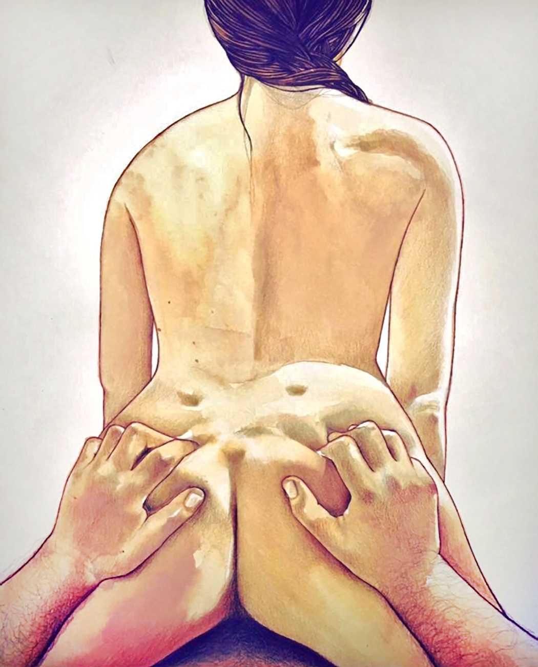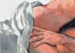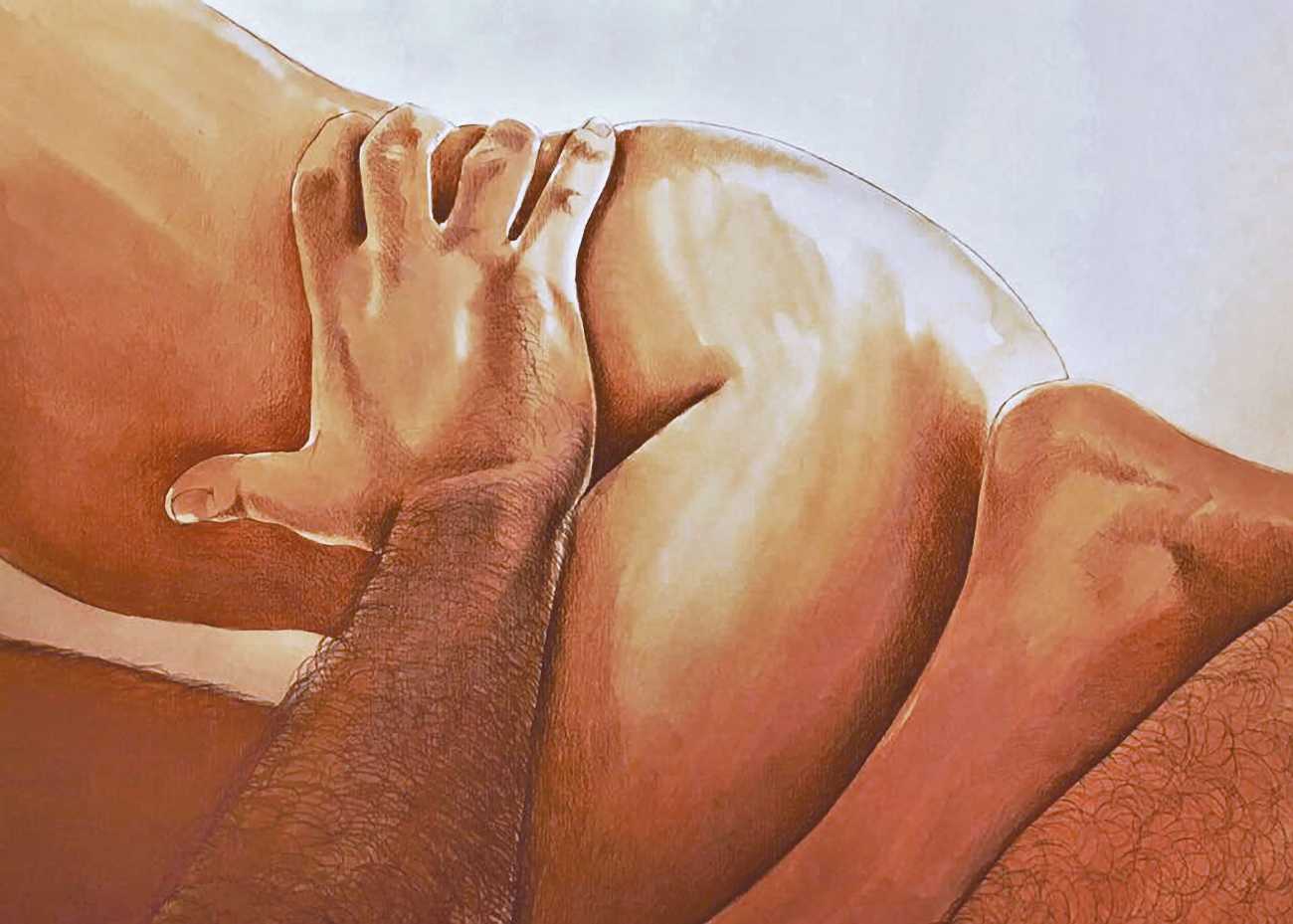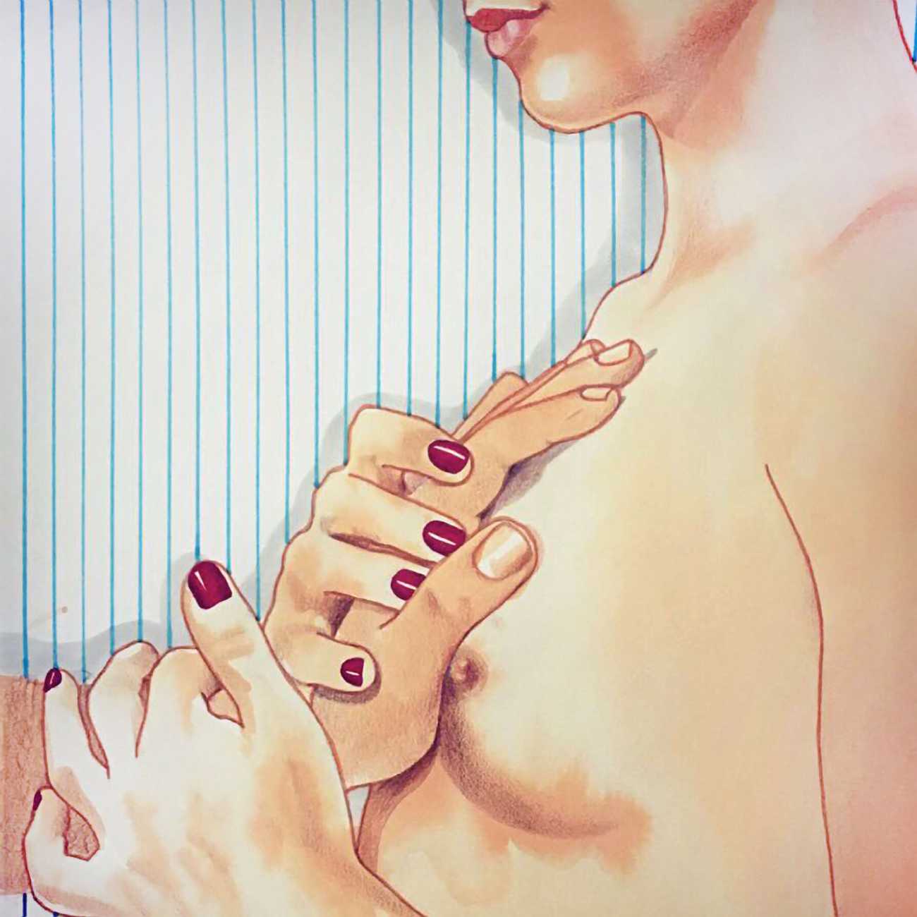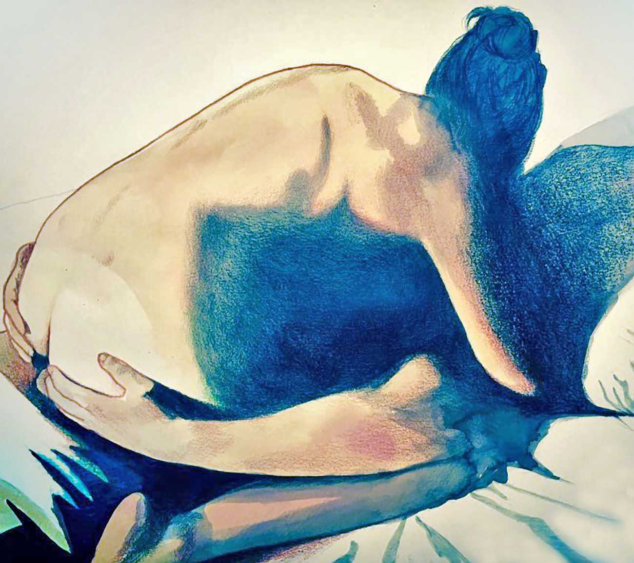 The young Italian artist Frida Castelli has gathered a prodigious and appreciative internet audience since she started posting her artwork online in 2017, and she now has a portfolio which includes prints and books as well as her trademark ink and watercolour paintings of a naked lover enjoying intimacy with herself and her partner.