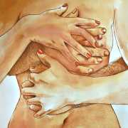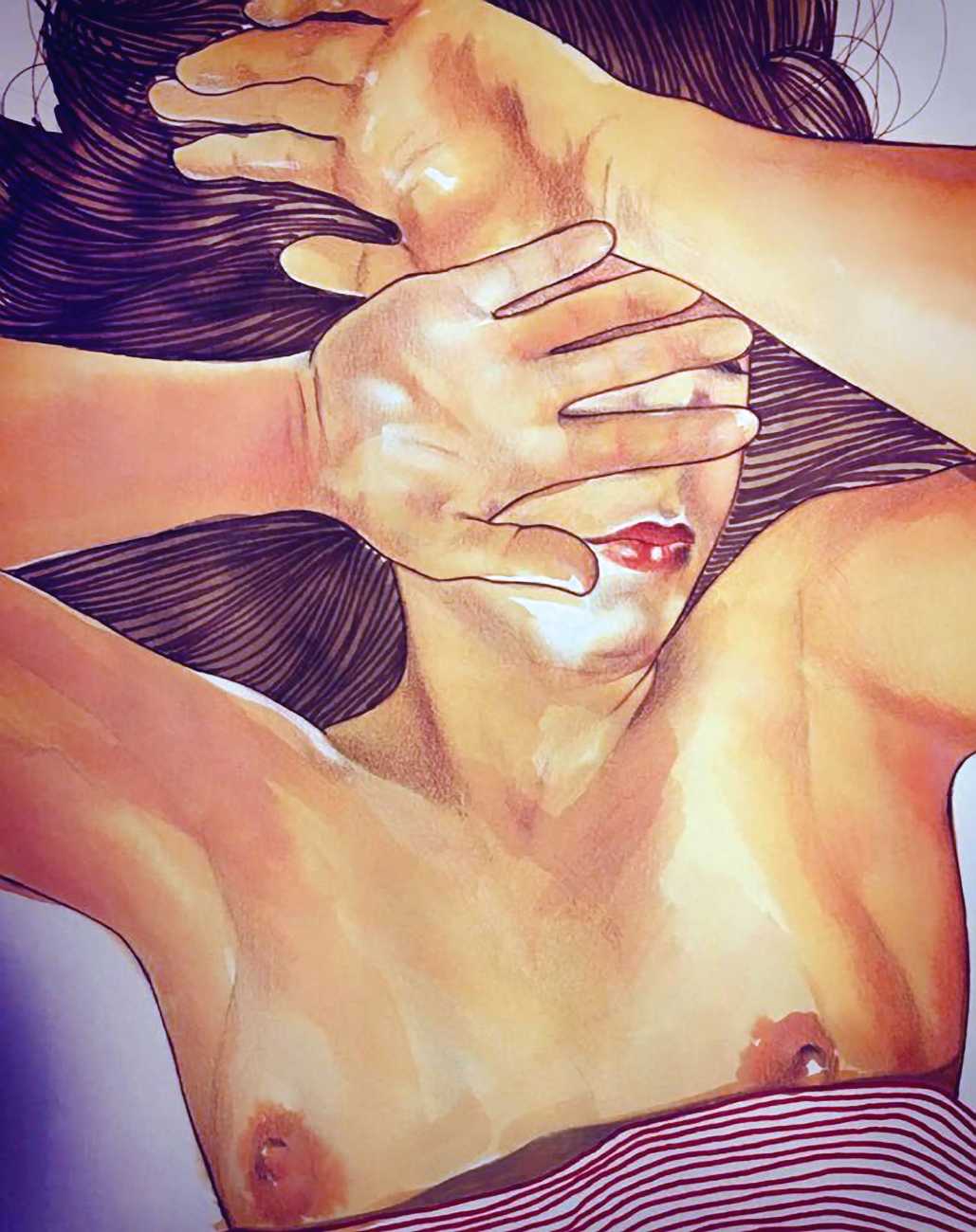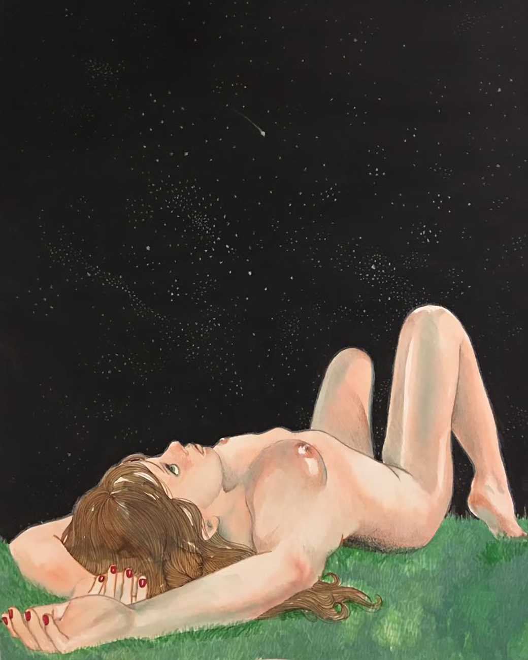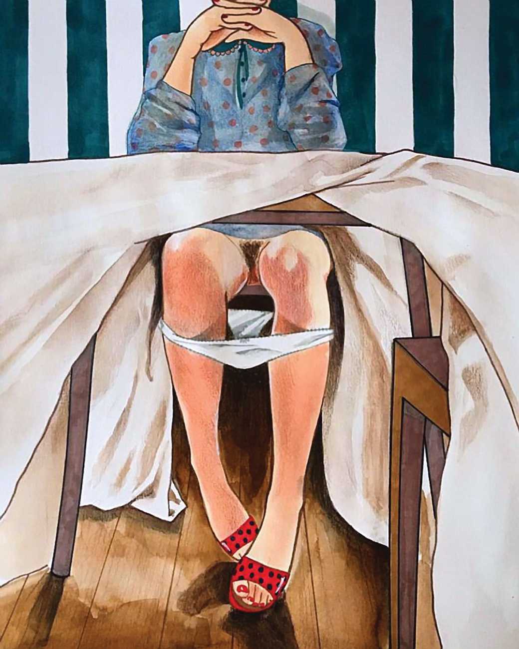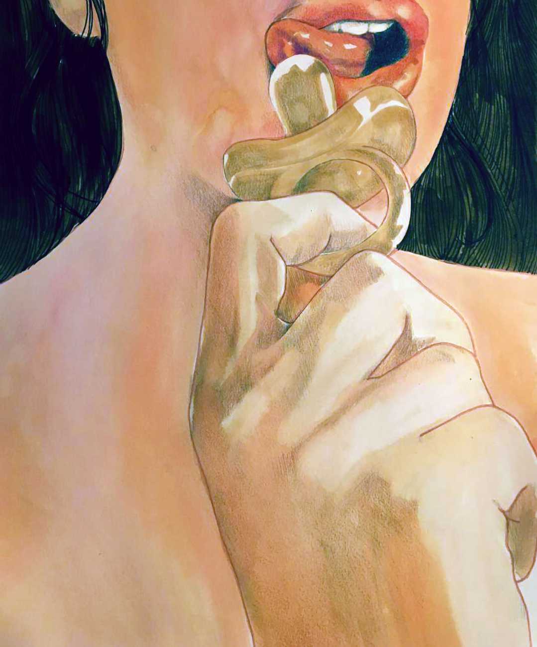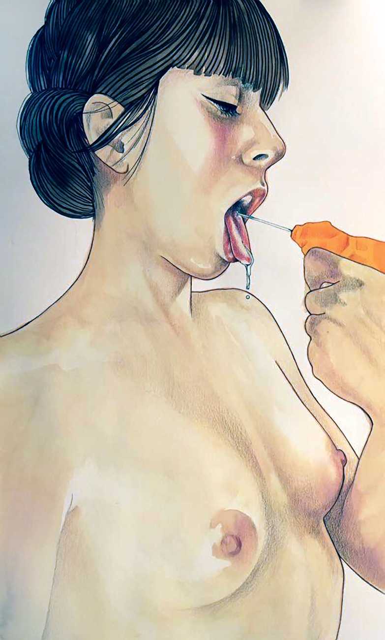 The young Italian artist Frida Castelli has gathered a prodigious and appreciative internet audience since she started posting her artwork online in 2017, and she now has a portfolio which includes prints and books as well as her trademark ink and watercolour paintings of a naked lover enjoying intimacy with herself and her partner.