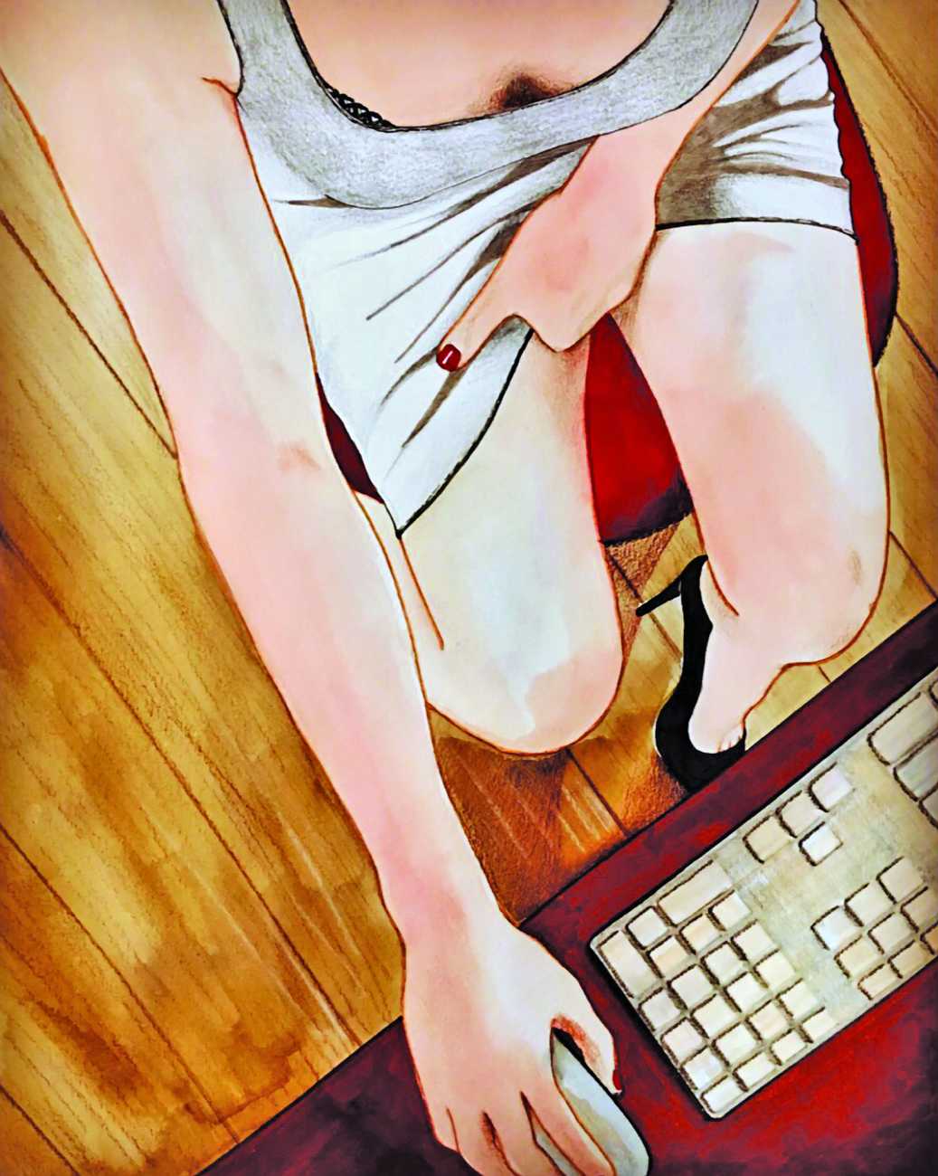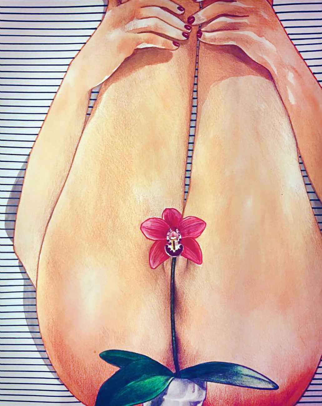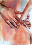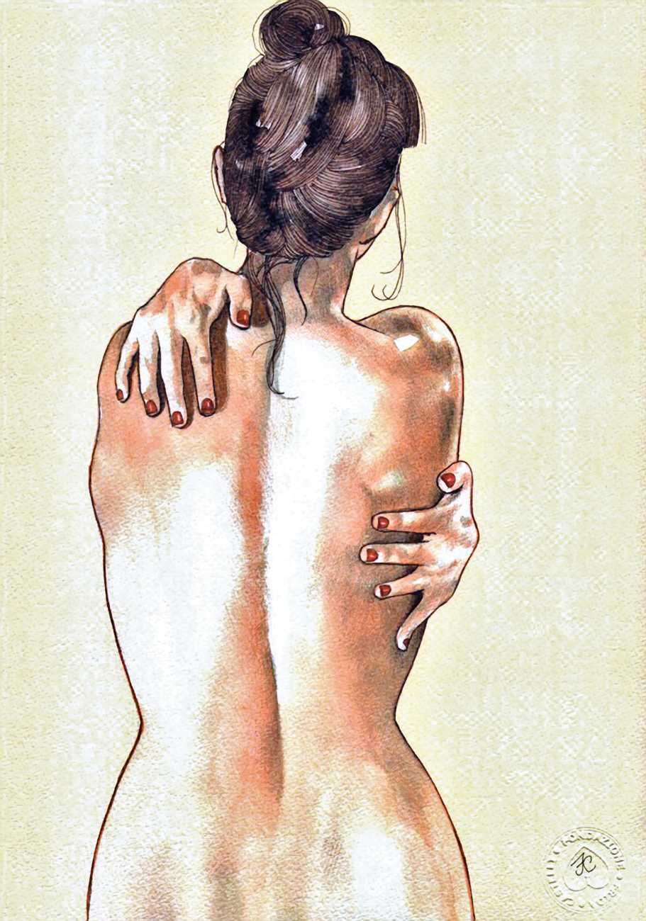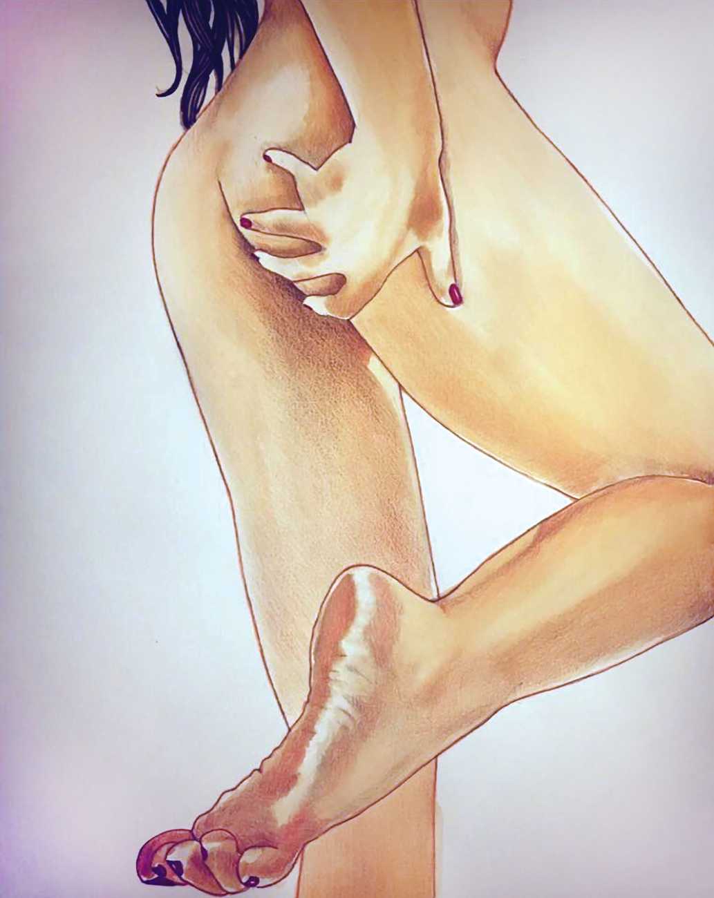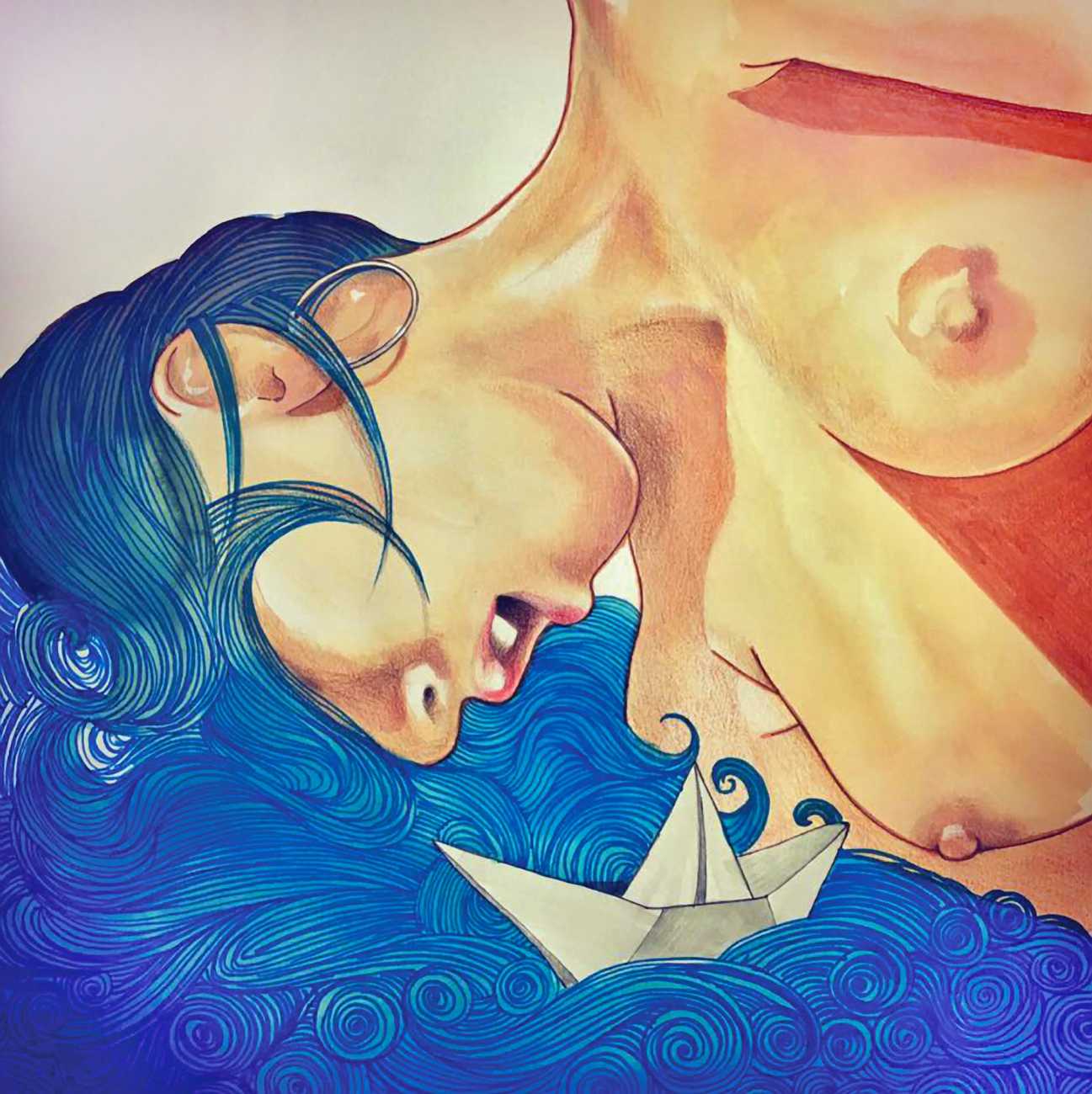 The young Italian artist Frida Castelli has gathered a prodigious and appreciative internet audience since she started posting her artwork online in 2017, and she now has a portfolio which includes prints and books as well as her trademark ink and watercolour paintings of a naked lover enjoying intimacy with herself and her partner.