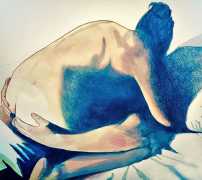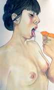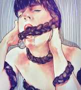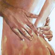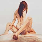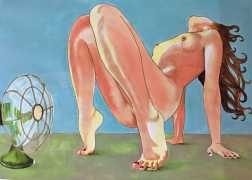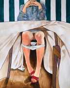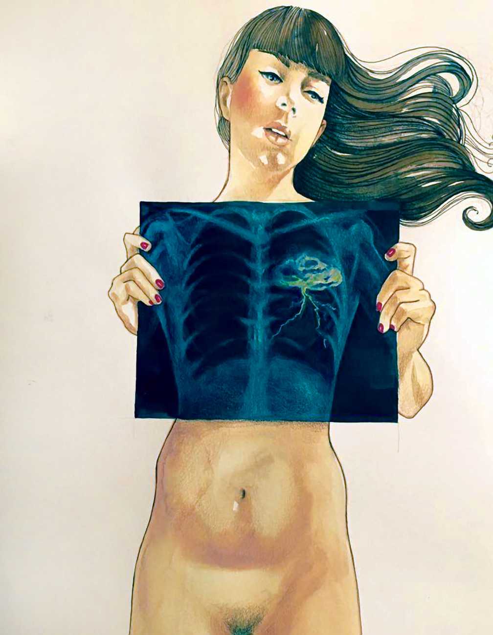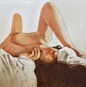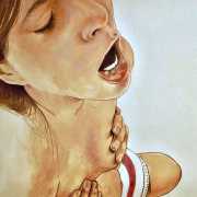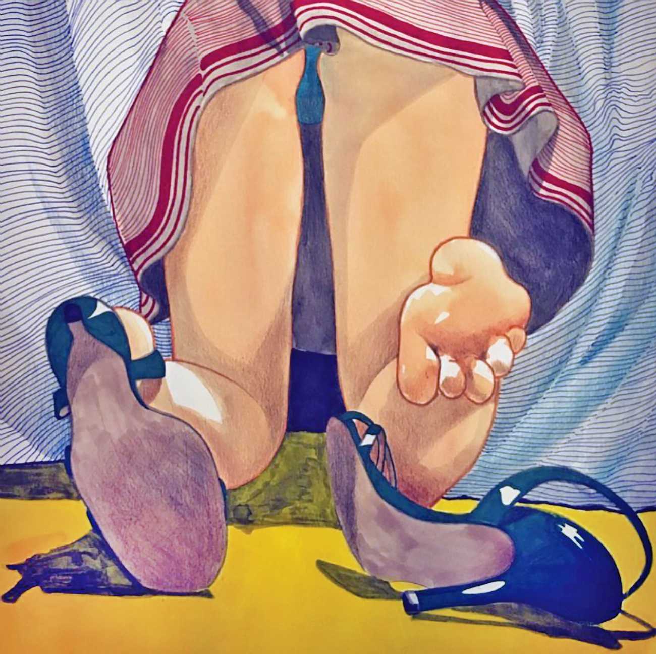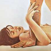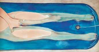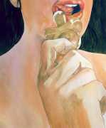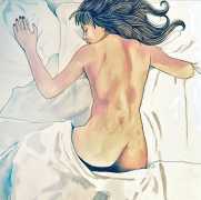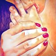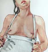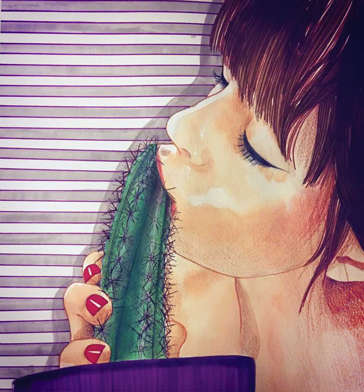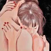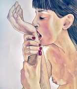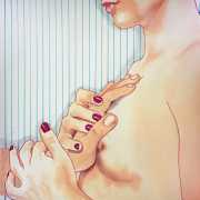 It is clear that nearly all her work is more or less autobiographical. She has said that ‘In my paintings I talk about my long-distance love story, expressing my emotions and my desires’, and that when she creates a new work she often ‘feels a deep melancholy, because I am describing a moment that happened and am left with feeling empty for not knowing if and when it will happen again.’