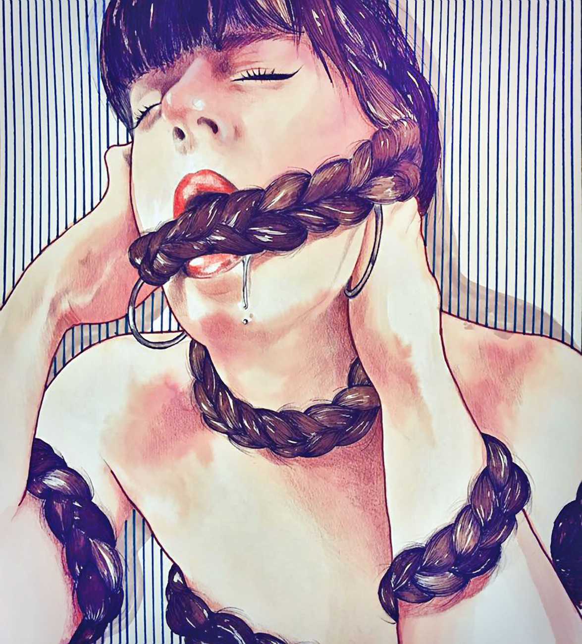 Her large online following, composed almost equally of women and men, clearly senses a deep emotional connection with much of the narrative contained in her work, and since she has been posting regularly to her Instagram and Facebook groups she feels both a reciprocal connection and a responsibility. ‘As my profile has garnered more attention,’ she says, ‘I feel that to more clearly deliver my personal message I want to show real respect towards the people who appreciate and buy my work. It’s like when you host guests, you want always to offer them a dish of pasta and a glass of wine to make them feel welcome.’