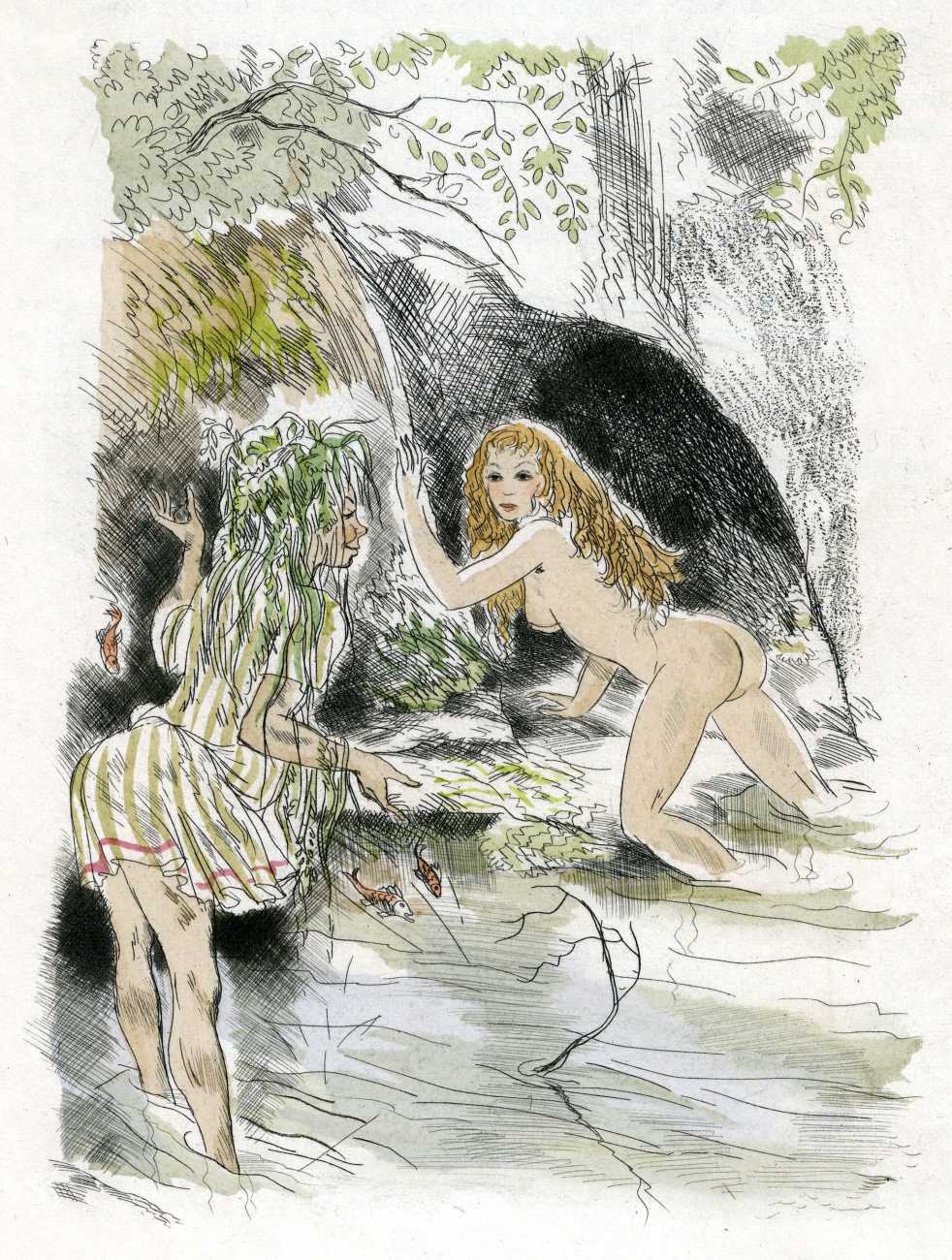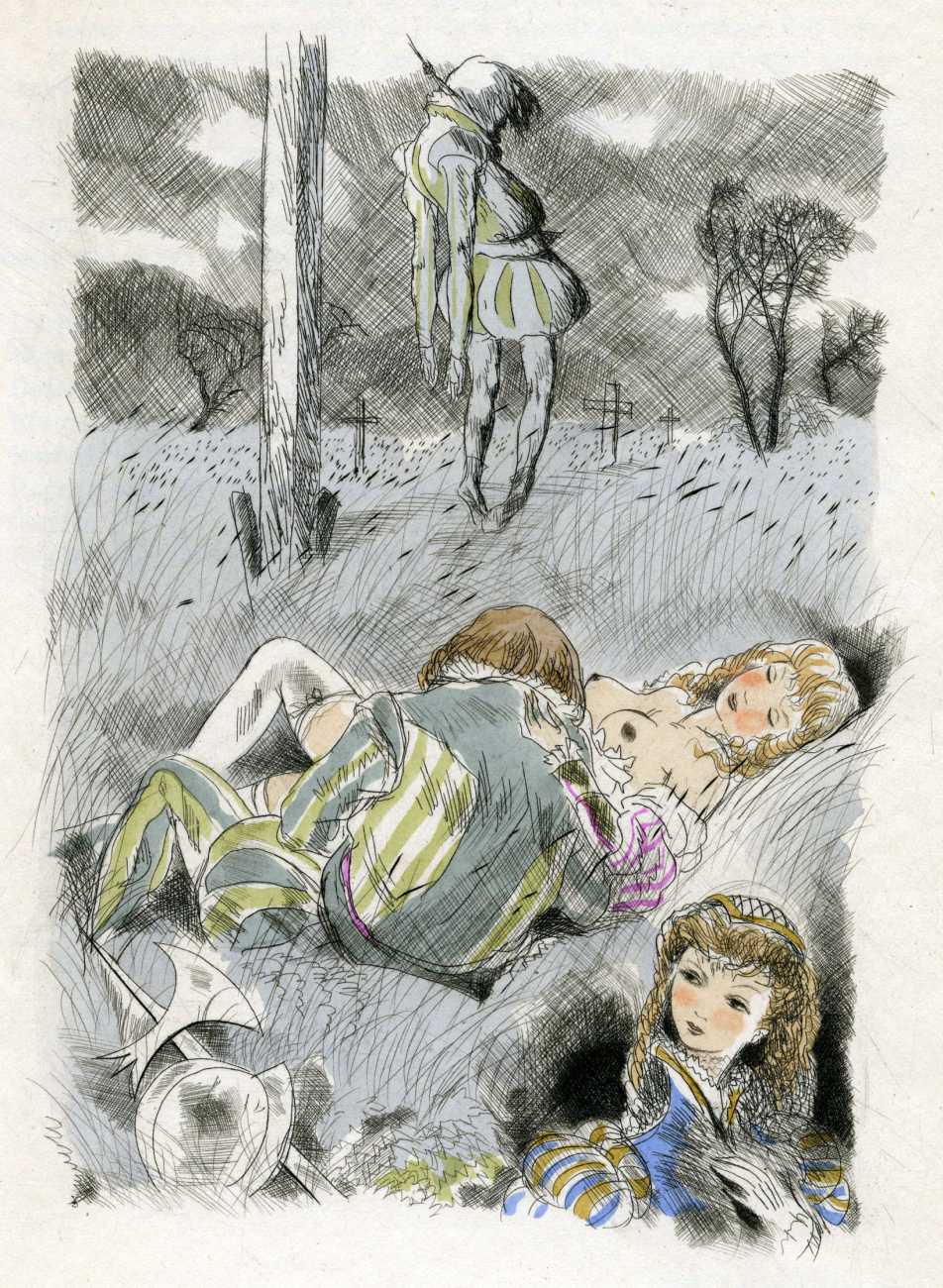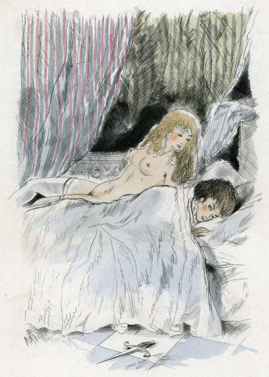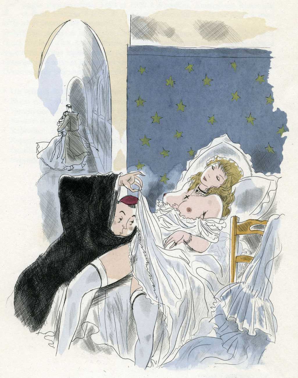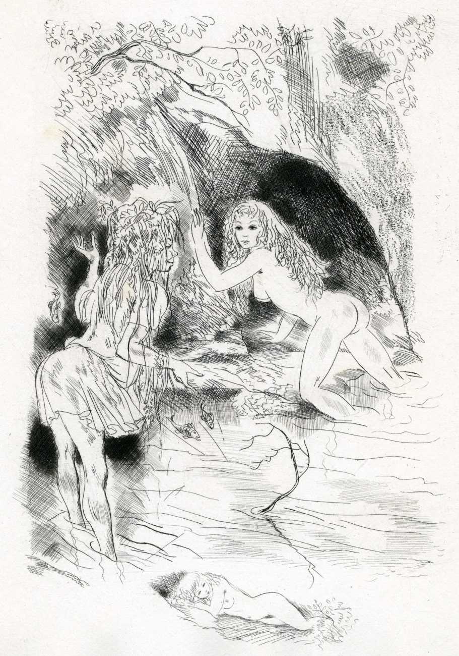Now known as a reliable and tasteful erotic artist, commissions followed for Mac Orlan’s Les dés pipés, ou Fanny Hill in 1951, Tallemant des Reaux’s Historiettes galantes in 1952, La vie privée du Maréchal duc de Richelieu in 1953, Louÿ’s Chansons de Bilitis in 1954, and Rabelais’ Gargantua in 1956.