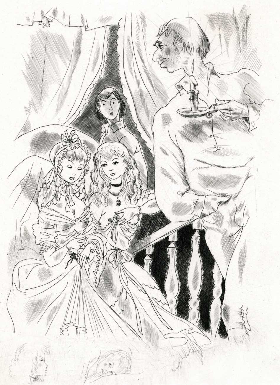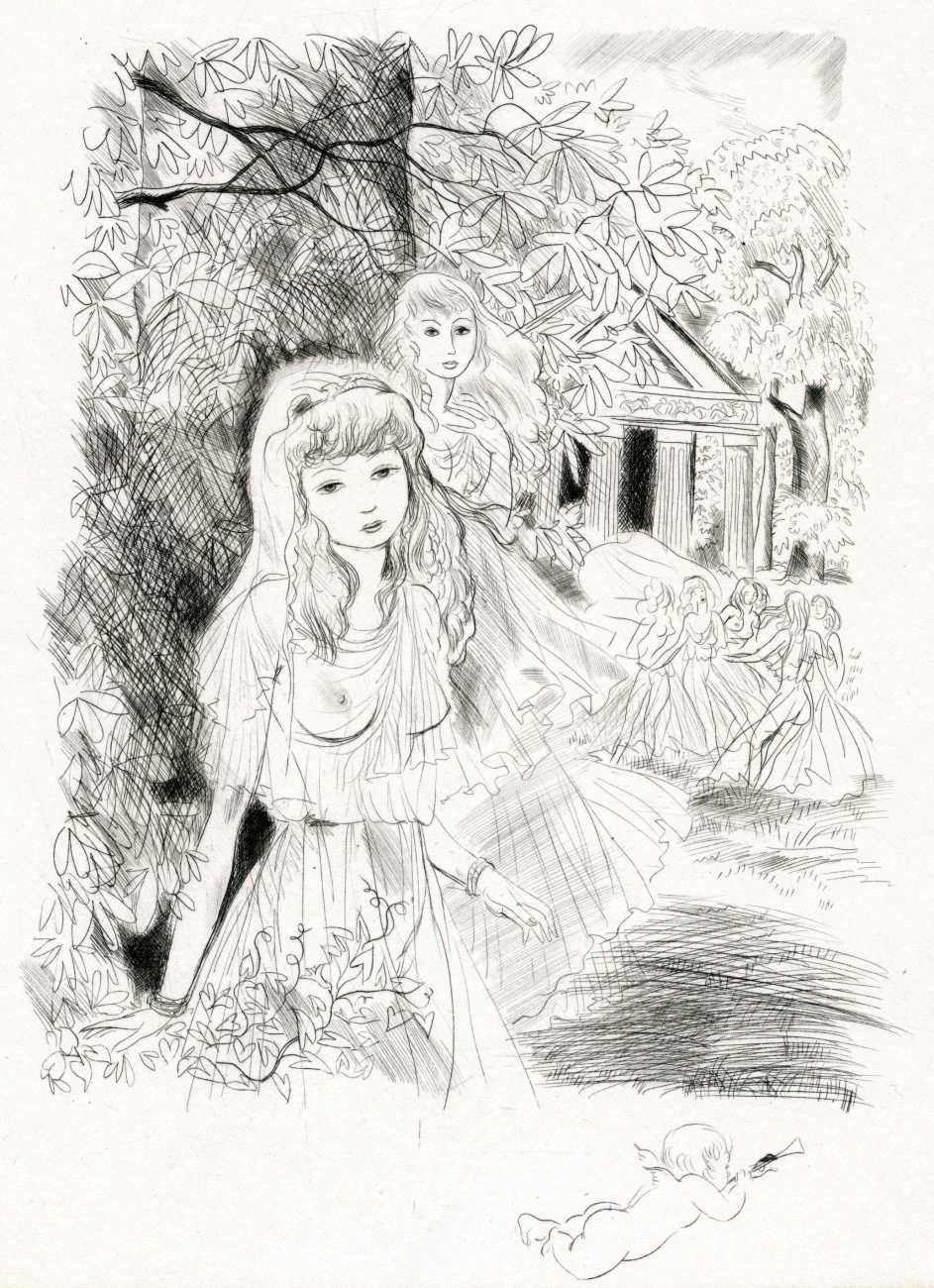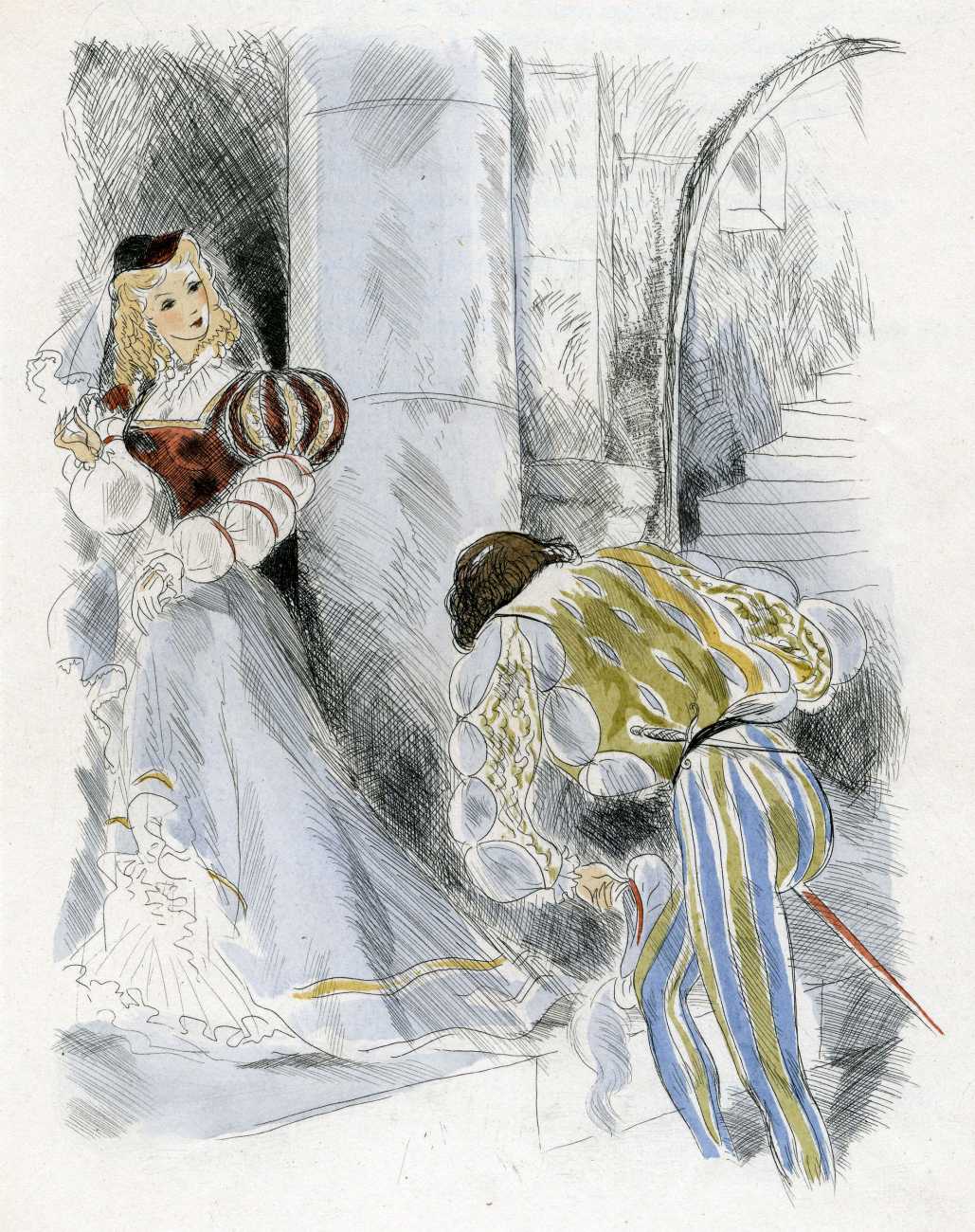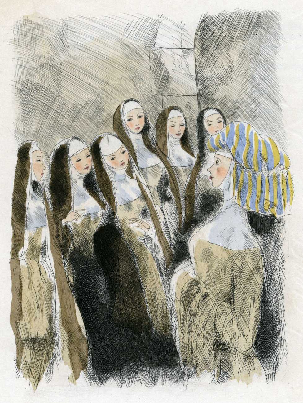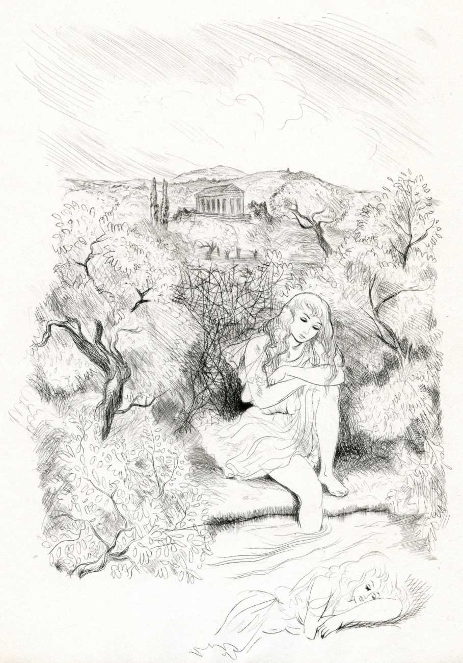 Now known as a reliable and tasteful erotic artist, commissions followed for Mac Orlan’s Les dés pipés, ou Fanny Hill in 1951, Tallemant des Reaux’s Historiettes galantes in 1952, La vie privée du Maréchal duc de Richelieu in 1953, Louÿ’s Chansons de Bilitis in 1954, and Rabelais’ Gargantua in 1956.