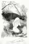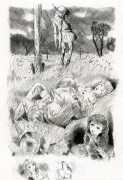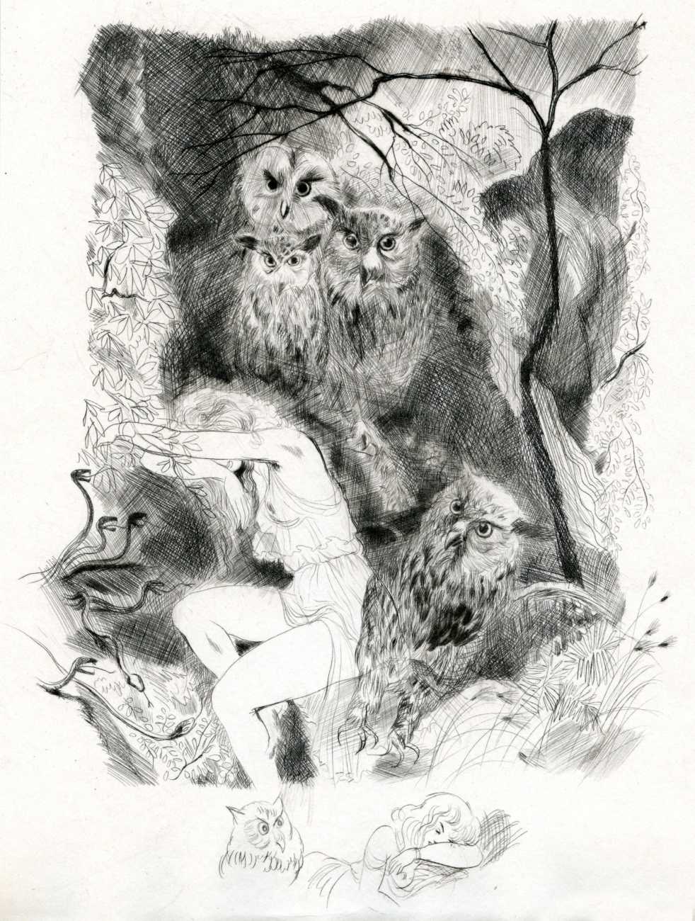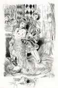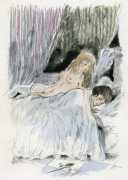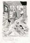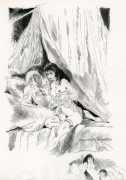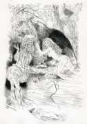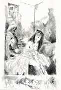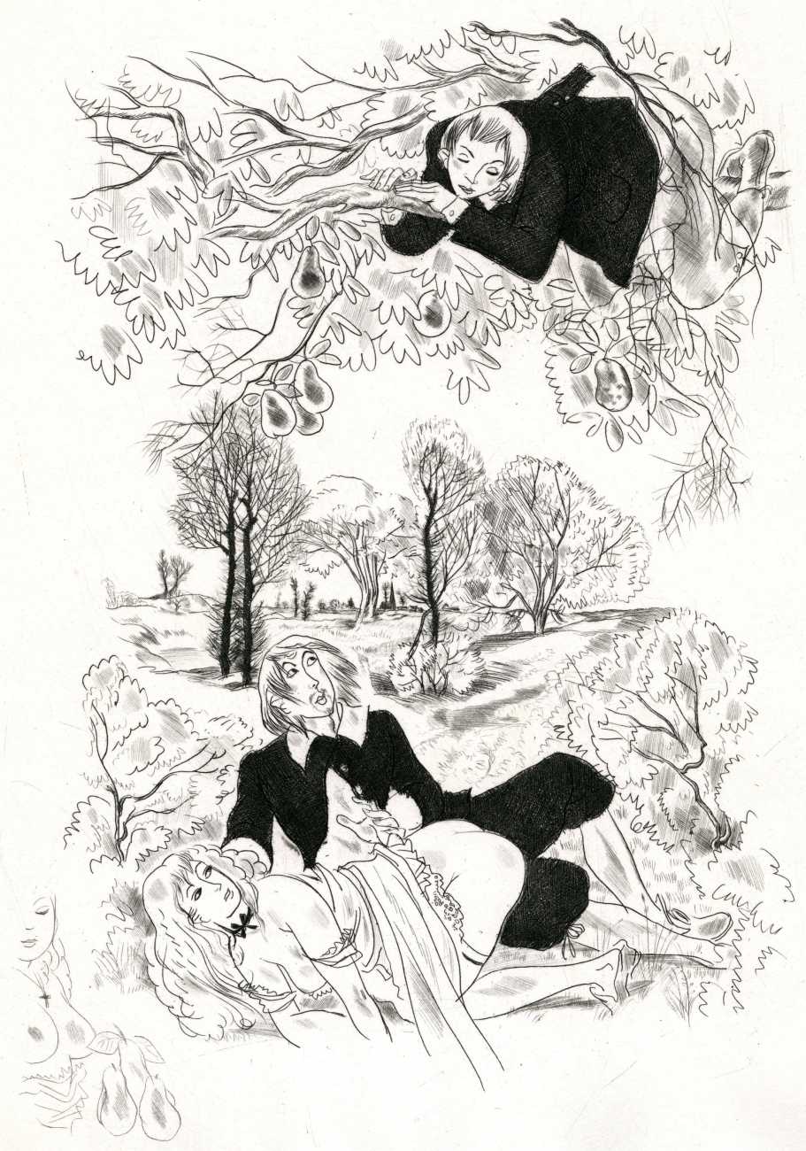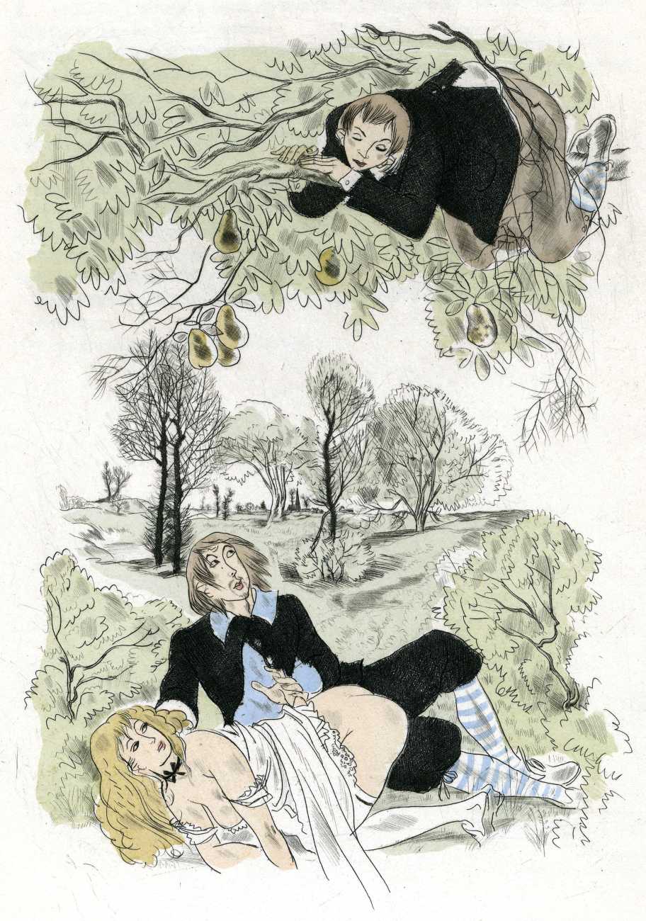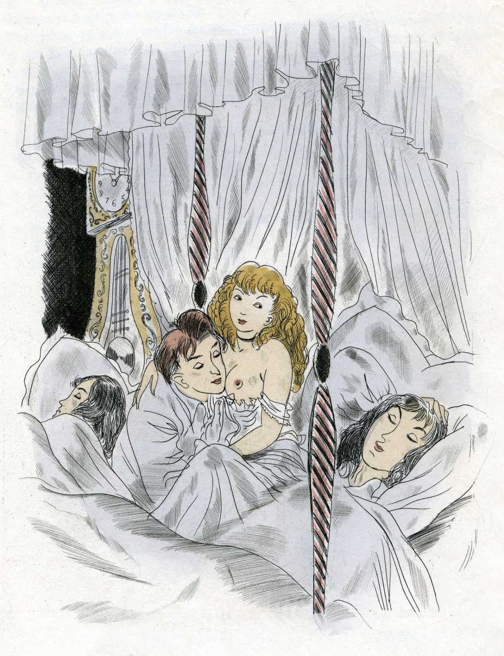 Illustrated editions of Maupassant and Balzac, Zola and Hugo, Dickens and Flaubert followed in rapid sucession, but it was in 1950 that he was first commissioned to illustrate a specifically erotic title – Sade’s Justine, for Editions de la Vieille France. The Justine illustrations were fairly tame, but when Au Carquois d’Argent commissioned artwork for a limited edition of Mirabeau’s L’Adam lascif, Barret finally engaged his skills and imagination to produce what are arguably some of his best and most explicit illustrations.