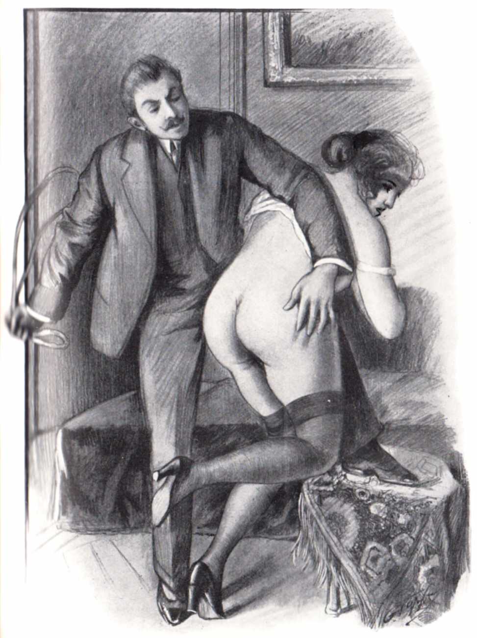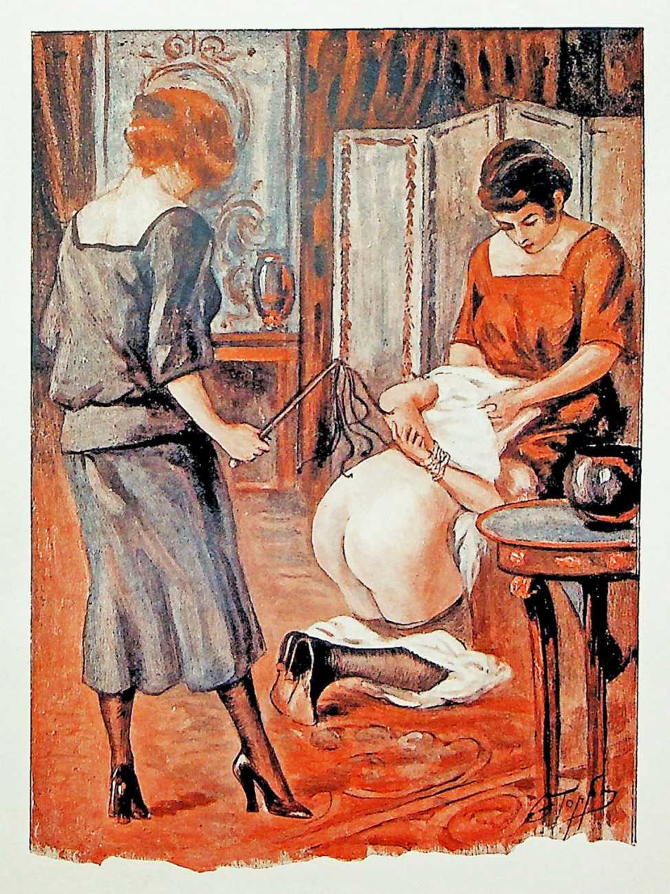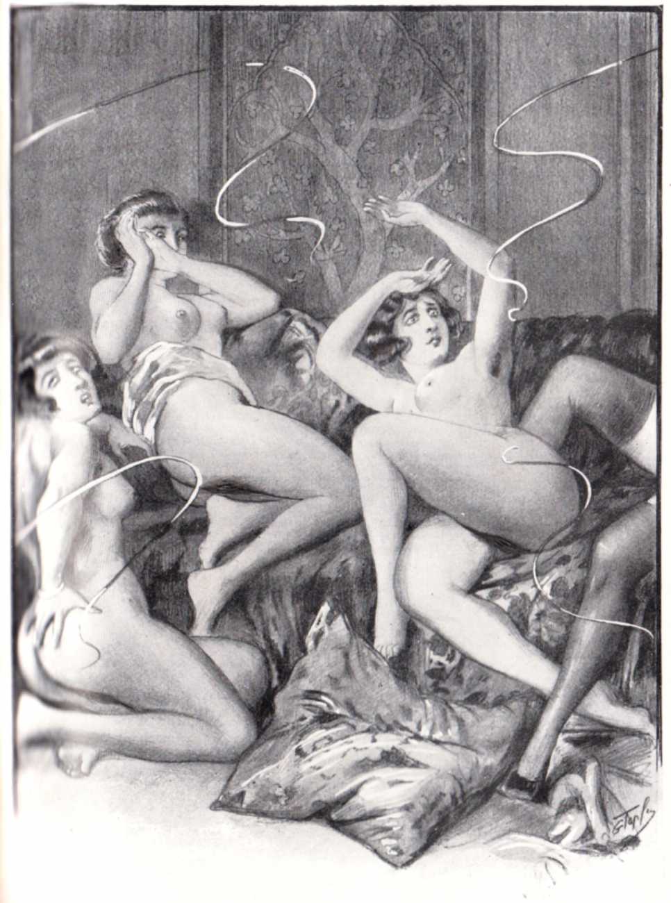 So, if ‘Smit’, ‘Topfer’ and ‘Barclay’ are pseudonyms, who are the real artist or artists hiding behind them? Smith, Potter (Töpfer is German for a potter) and Barclay are all common English names, though whether this suggests an English artist is unlikely. More likely is an allusion to ‘the English perversion’ of flagellation. Of all the artists in the genre whose identities are known, the closest in style are Luc Lafnet and Louis Malteste, especially the latter. If we had to guess, we believe that at least some of the ‘Smit/Topfer/Barclay’ drawings are by Malteste, and it is even more likely that publishers like Paul Brenet and Jean Fort maintained a small band of freelance artists who were regularly commissioned to illustrate these ever-popular titles, and who knew exactly what was required.
