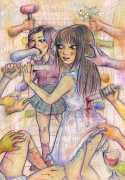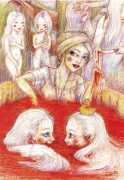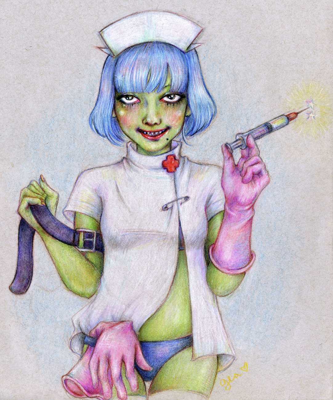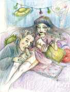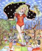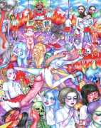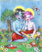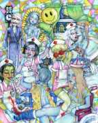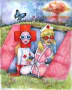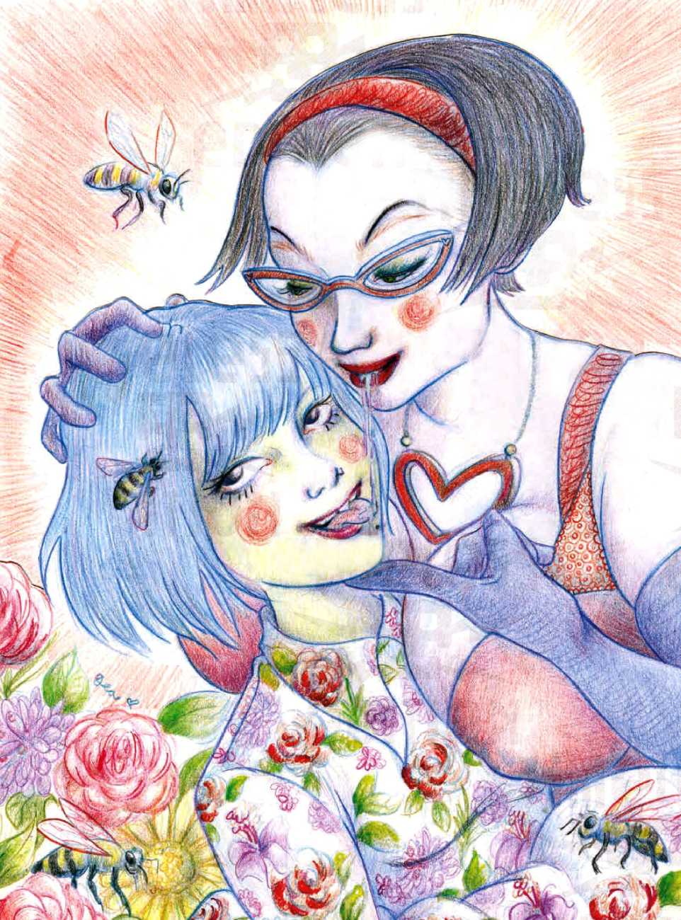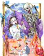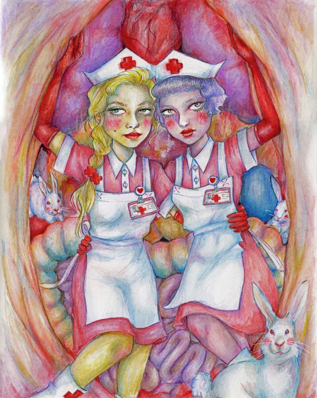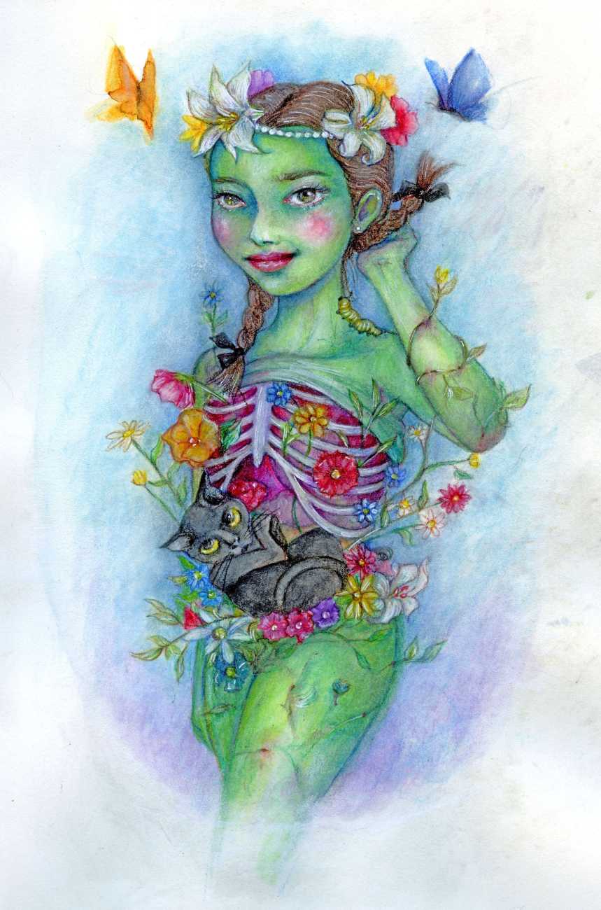 From an early age she identified as something of a rebel, leaving home in her late teens to live with a drag queen in ‘an unglamorous New York life that gets mistaken as poetic whenever mentioned’. At 25 she met the performance artist Shaun Partridge, co-founder of the infamous Partridge Family Temple, a pseudo-religion devoted to the worship of the members of The Partridge Family television show. She was having to work in jobs that were rather tedious, but always had her sketchbook with her, trying out styles and themes while she found her own artistic path, ‘but some people seemed to dig it and I appreciated the encouragement.’