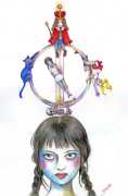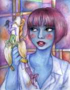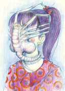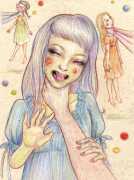 By the 2000s she was beginning to produce the kind of work she is now known for, and now she ‘takes work very seriously, and has no time for dilettantes or hobbyists’. As well as continuing to produce her ongoing ‘Tiny Girls’ series and limited edition publications, she is exploring the production of comic strips, and experimenting with photography and short films.