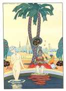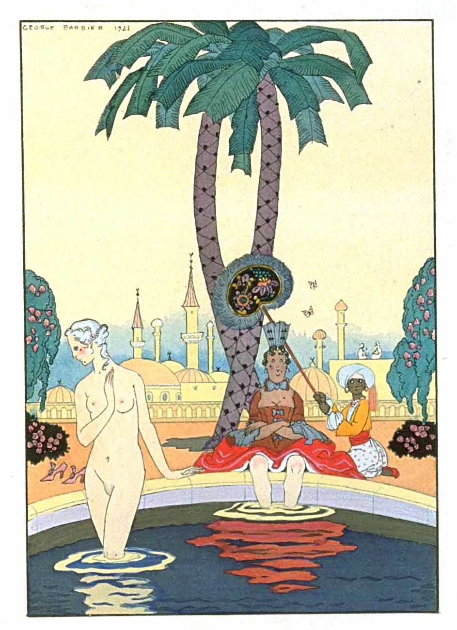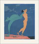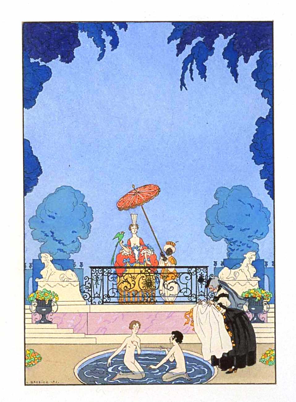 Barbier also turned his hand to jewellery, glass and wallpaper design, and wrote essays and many articles for the prestigious Gazette du Bon Ton. In the mid-1920s he worked with Erté (the pseudonym of Romain de Tirtoff) to design sets and costumes for the Folies Bergère, and achieved mainstream popularity through his regular appearances in L’Illustration magazine.