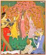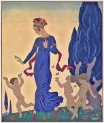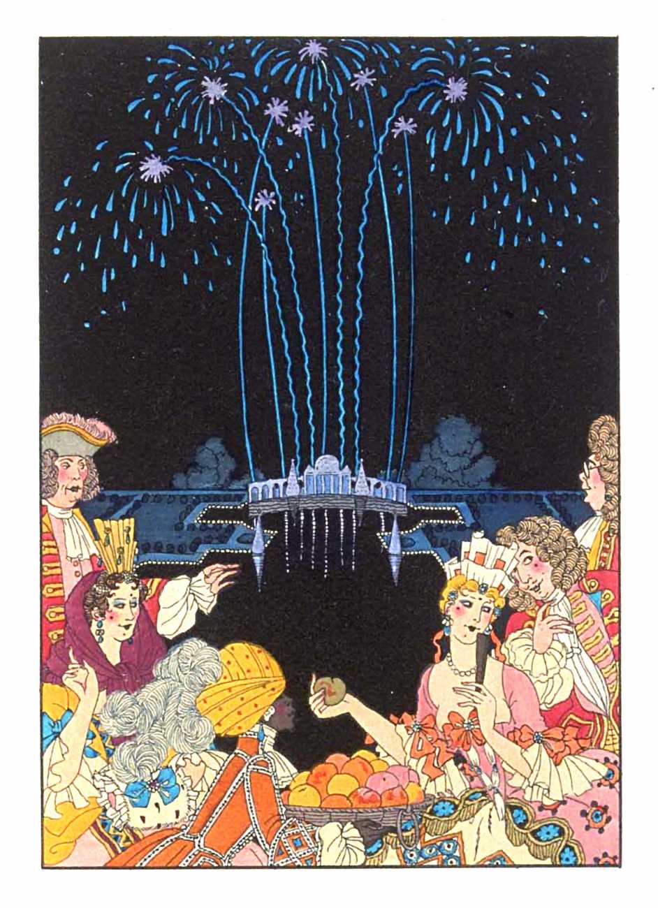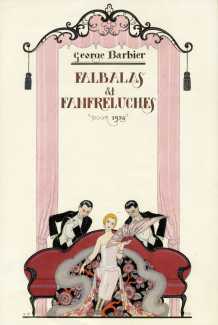 As well as the books illustrated by Barbier, he was the main contributor to two fashion periodicals, La Guirlande des Mois (The Garland of Months) and Falbalas et Fanfreluches (Frills and Furbelows). Guirlande was published annually from 1917 to 1921, and Falbalas annually from 1923 to 1926, each elegant boxed volume containing coloured prints, an anthology of writings, a calendar, and blank pages for notes.
