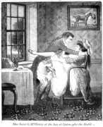 As a reaction against a strict upbringing and the drudgery of his work, Morland regularly associated with the demimonde, and acquired a reputation for recklessness and hard drinking. After his marriage and early professional success he became more extravagant and addicted to low and sporting company. By 1789 he was seriously in debt and had to dodge creditors, and in 1793 he was warned by his physician of the dangers of further debauchery. After 1794 his debts required constant changes of address and greatly increased productivity. In 1799 he was arrested at his lodgings in Vauxhall and committed to the King’s Bench, living within the rules of the prison until his release in 1802. Morland spent his last years with his brother Henry, who had a picture shop on Dean Street in Soho. Both his work and his health deteriorated, and worn out by his dissolute life he died of brain fever in a debtors’ lock-up.