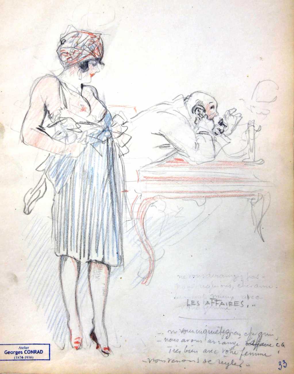 Georges Conrad is one of those prolific illustrators of the early twentieth century of whom little biographical information is recorded, and what little there is is regurgitated in every reference to the artist. We know that he grew up in Aubervilliers in the north-east suburbs of Paris. The son of a Paris valet, his artistic skills were sufficient to secure a place at the École des Beaux-Arts (School of Fine Arts) in Paris in 1894.