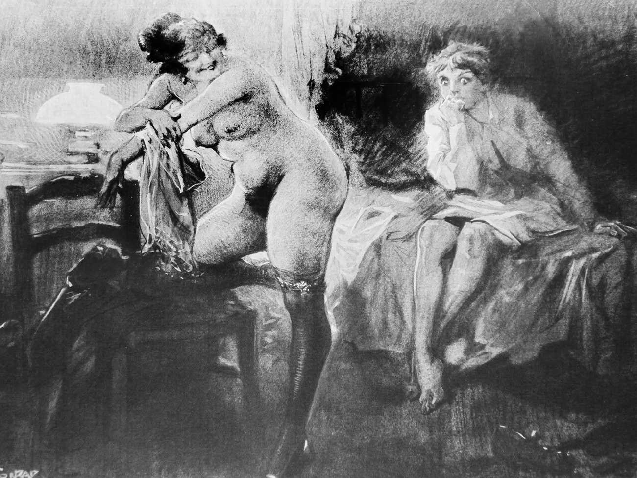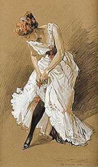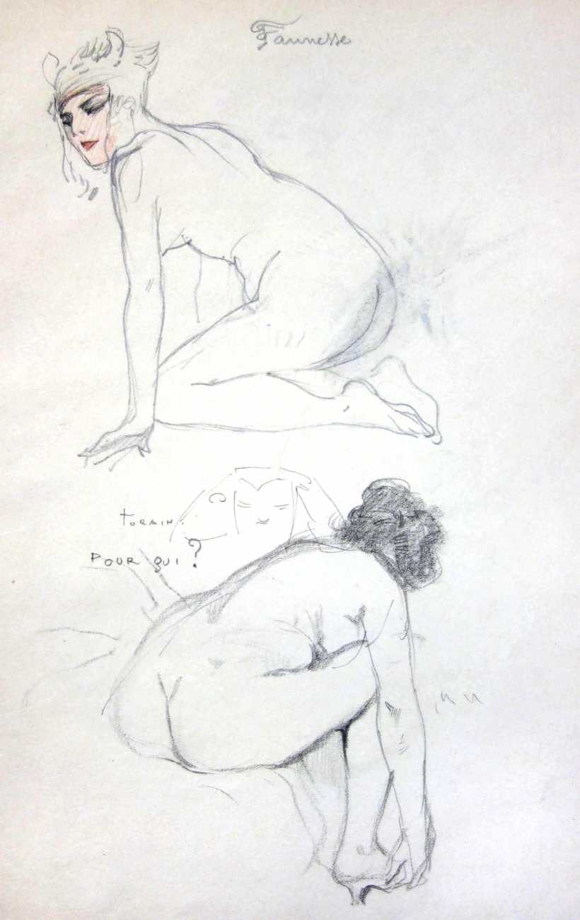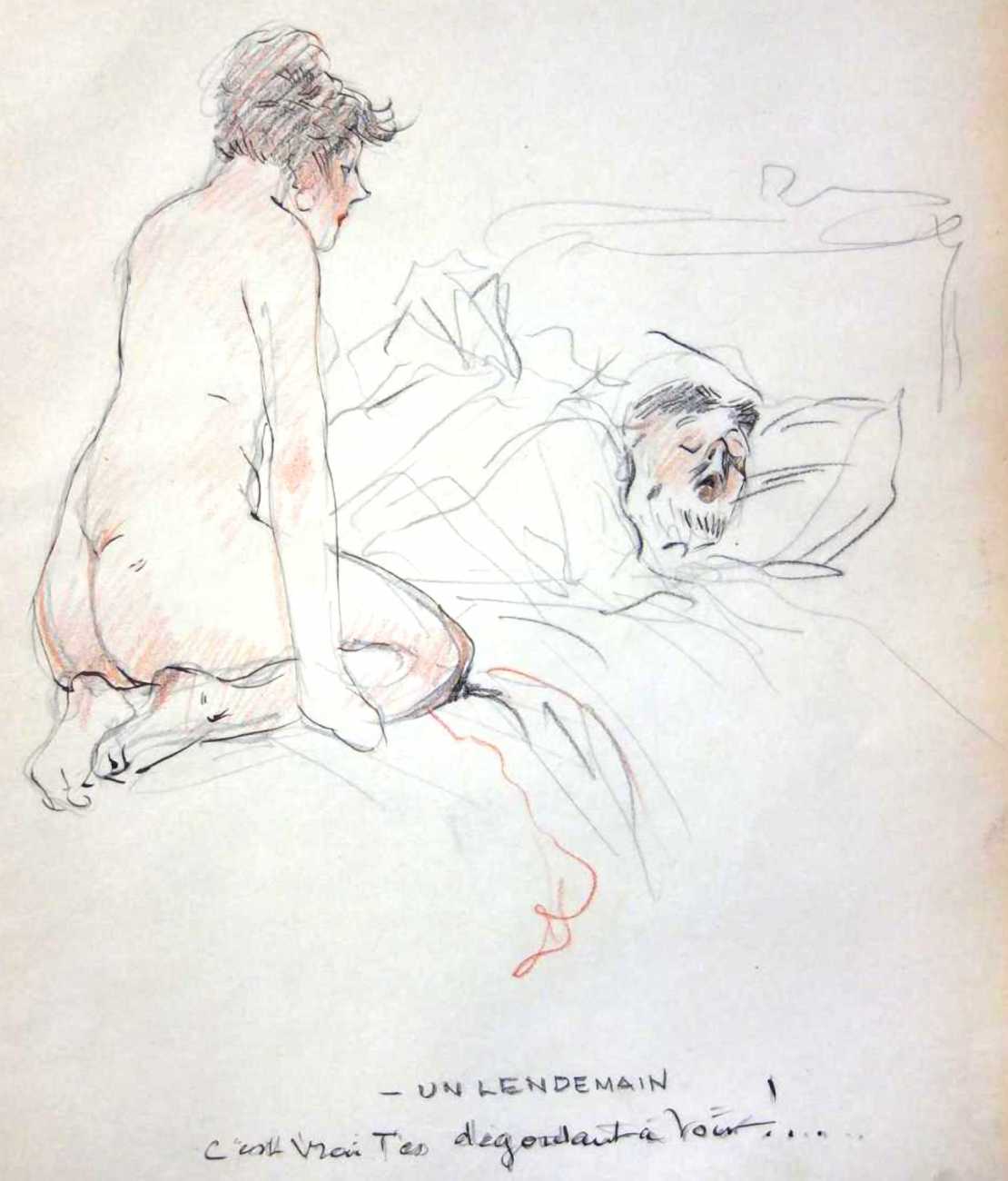 During the 1914–18 war his skill in drawing military scenes saw him producing patriotic postcards and illustrating publications like La France Héroïque (Heroic France). He continued to produce commissions for Fayard, including in 1930 some very tame illustrations for Théodore Gautier’s Mademoiselle de Maupin.