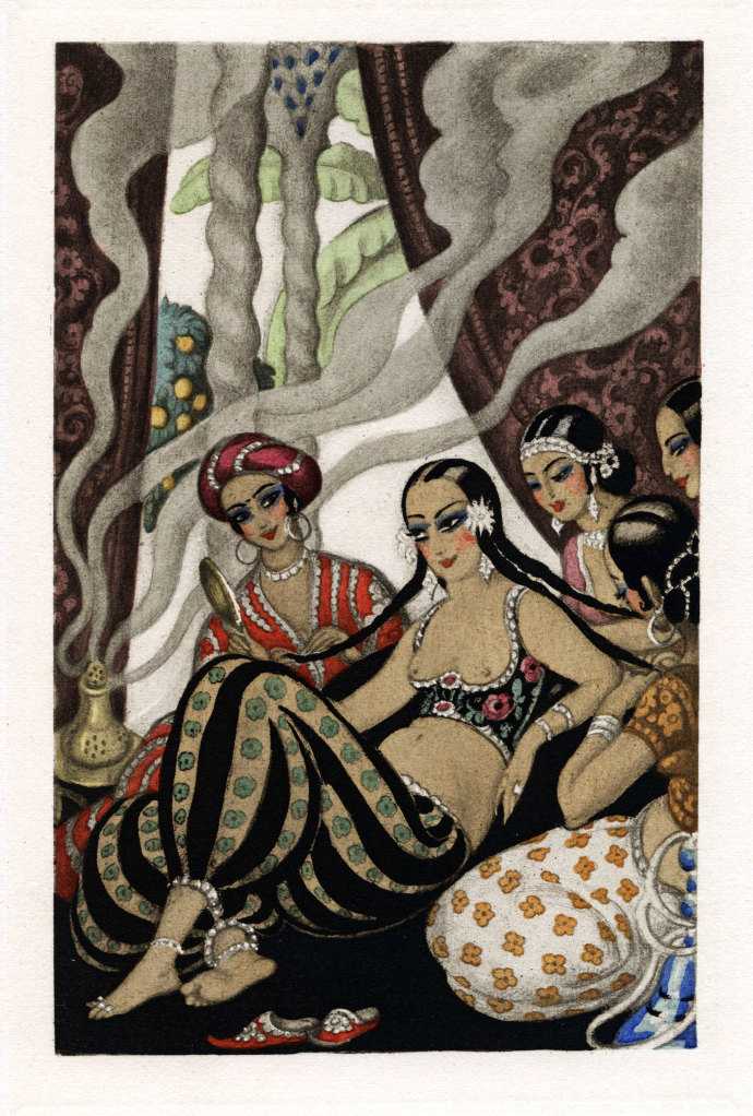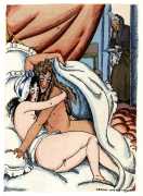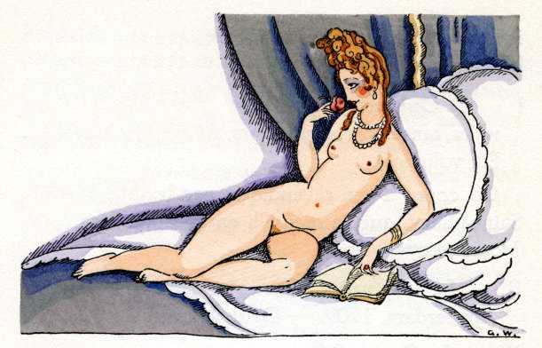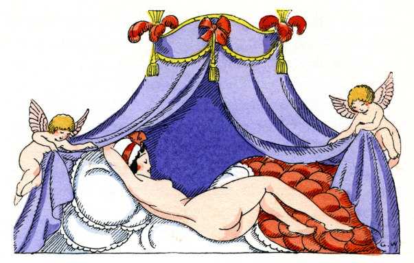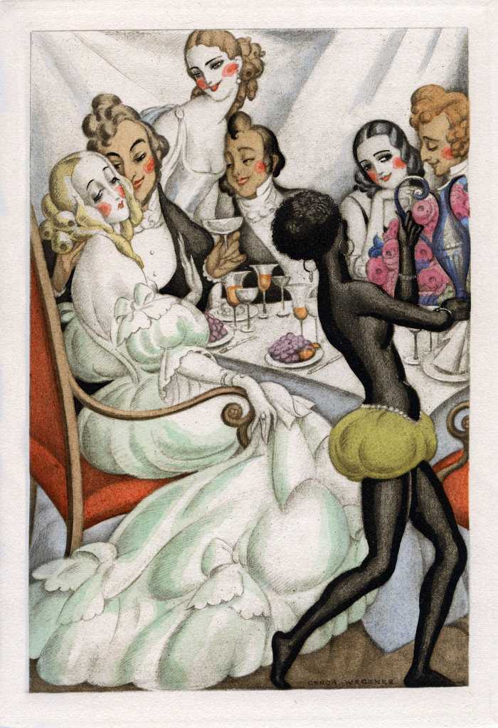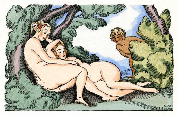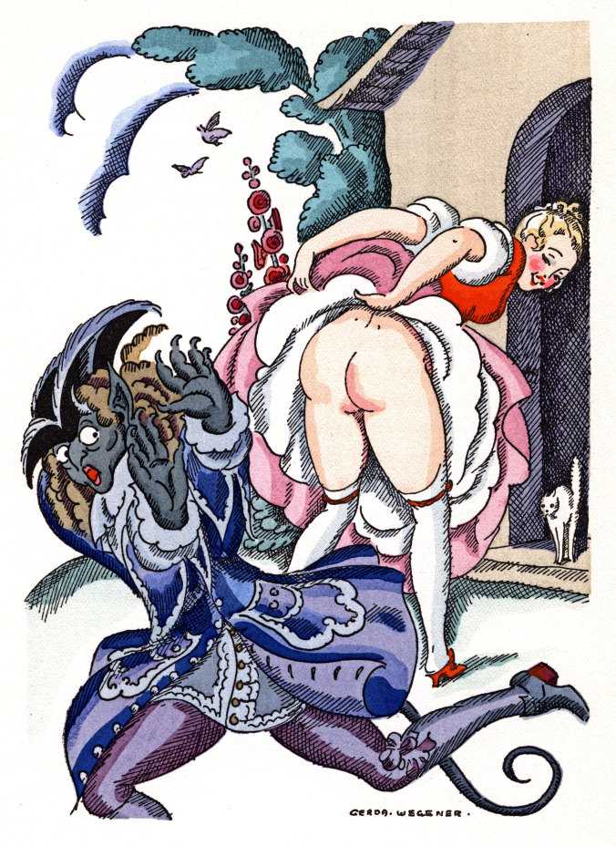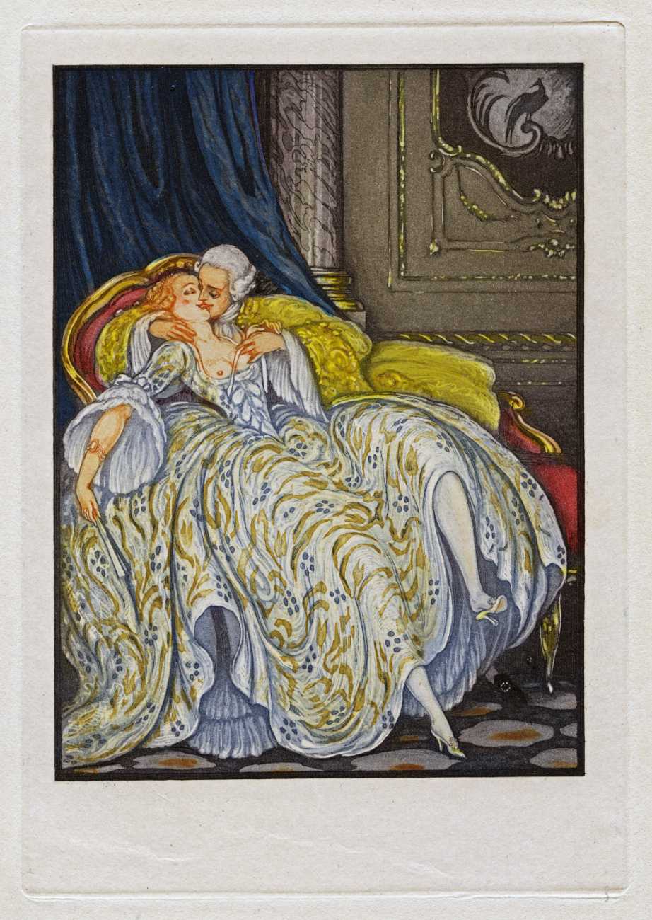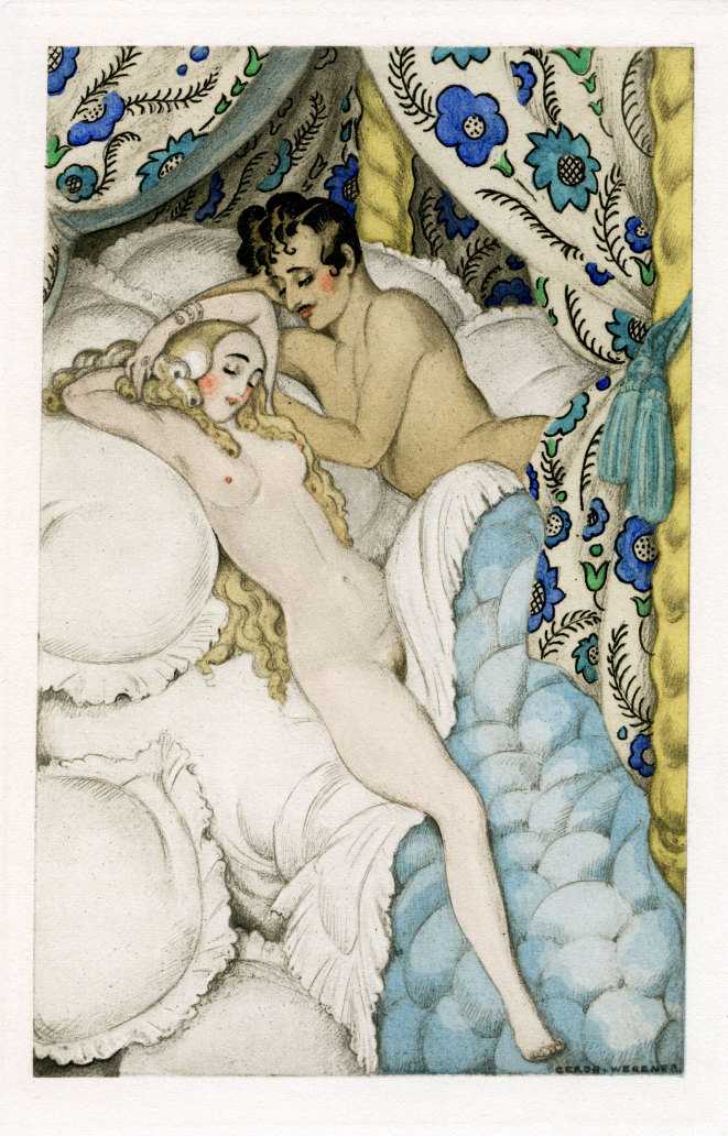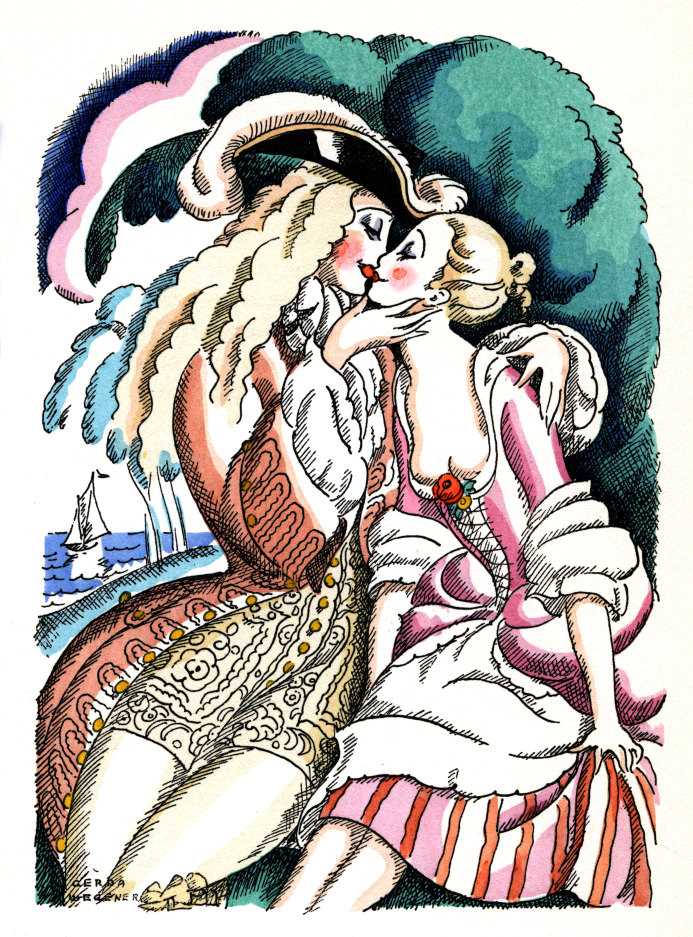 To what extent Gerda Wegener’s art and her own sexuality were connected is a fascinating question. There is no doubt that sensual and sexual intimacy fascinated her, both same-sex and cross-gender, and the illustrations in Les délassements d’Eros hint strongly at personal lesbian experience. It has been suggested that Einar and Gerda both knew they were gay when they married and used their relationship as cover, but it is much more likely that they discovered they very much enjoyed exploring gender boundaries together, both with each other and within the libertine artistic setting of the Paris they came to call home. If there is a tragic aspect to their story, it is that they were born a century too early to be allowed to express themselves fully.