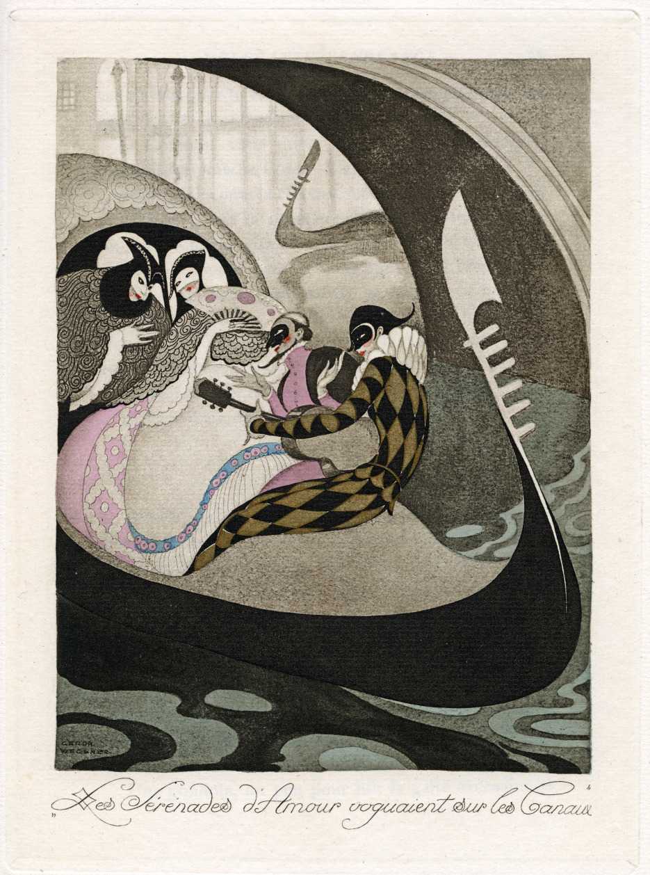 Once established in Paris, the couple immersed themselves in the Bohemian lifestyle of the time, befriending artists, dancers and gallery owners, and were often seen at parties and dances dressed in the latest fashions. Gerda’s colourful graphic style and attention to detail caught the eye of the magazine editors of the day, and she readily found work as an illustrator for Vogue, La Vie Parisienne, and several other fashion magazines. During the First World War she was vehemently partisan for her adopted country, and regularly produced artwork for patriotic posters and the nationalist weekly La Baïonnette.