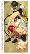 After working for several years in the comic magazine sector, the major Italian publisher Mondadori commissioned Gaudenzi to illustrate a major three-part history of Italy by Enzo Biagi in three volumes. Storia d’Italia, published in 1979, proved immensely popular, and was followed by Storia di Roma, Storia delle Invenzioni and Storia del Mondo, projects which kept him busy throughout the 1980s.