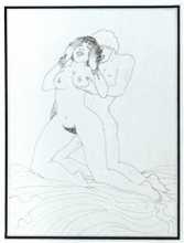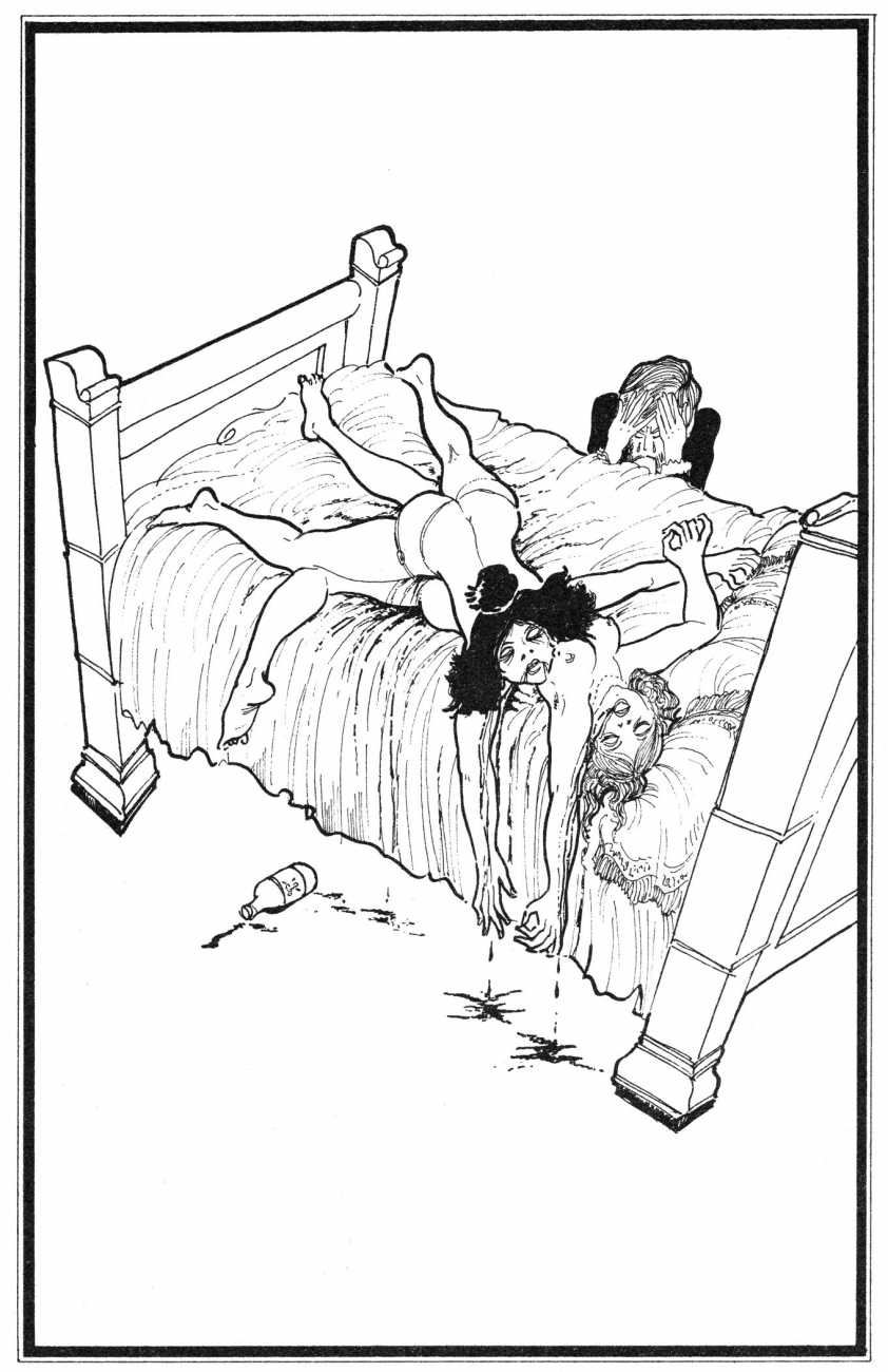 The first Garnon-illustrated work was the Marquis de Sade’s La nouvelle Justine, published by Editions Borderie in 1979, followed by Cent trente deux positions amoureuses in 1981 and Quelques images pour la jeunesse d’Alexandre, published by Jean Jacques Pauvert’s publishing venture La Vue in 1982. The last of Garnon’s quartet, a bande desinée version of Musset’s Gamiani, was also published by La Vue the same year.
