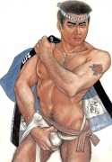 Go Hirano (平野剛) was a Japanese homoerotic fetish artist. Along with Go Mishima, Sanshi Funayama and Tatsuji Okawa, he is regarded by artist and historian Gengoroh Tagame as a central figure in the first wave of contemporary gay artists in Japan. His illustrations are noted for their realist art style, and often featured masculine men with body hair.