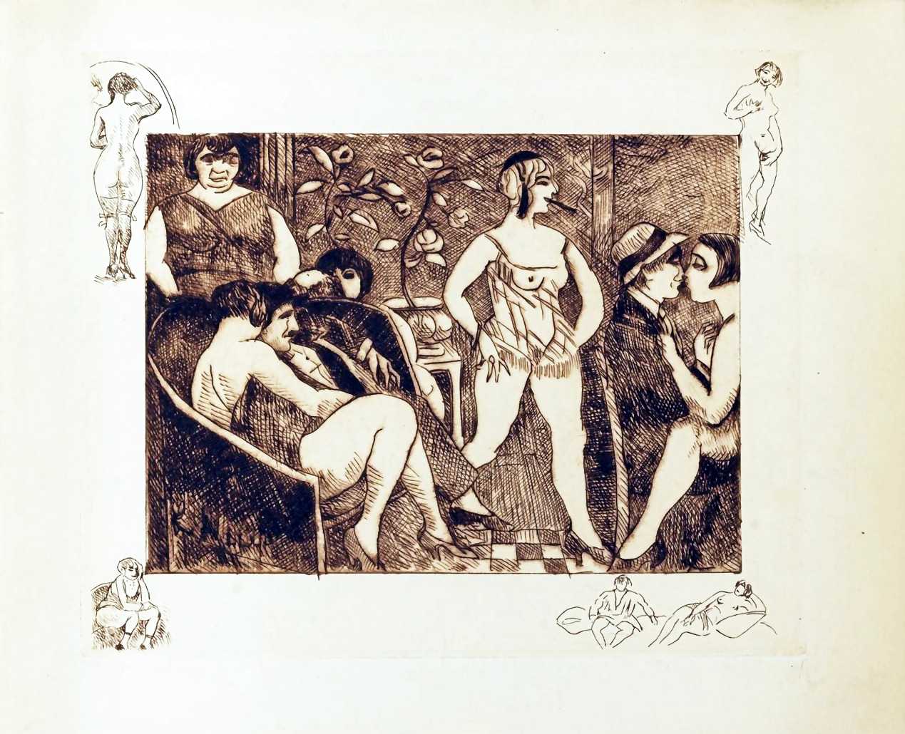 Assire was a versatile artist, engraver and illustrator; his landscapes of France and North Africa are fresh, his engravings skilled, and his book illustrations original. For many years he lived in the Montmartre area of Paris, and clearly enjoyed depicting the colourful life of the district’s many bars. He appears only to have illustrated three books – Paul Verlaine’s Liturgies intimes; Alfred de Musset’s Complete Works (with Emile Nourigat); and Pierre Mac Orlan’s Images secrètes de Paris.