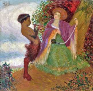 In November 1914 Pellar was appointed professor at Mathildenhöhe, but the heyday of the colony ended with the First World War. The nobility was abolished after the end of the war, and the Grand-Duke abdicated, though as we know from the Flamingo portfolio he and Pellar remained close. During the years of the Weimar Republic orders fell as the rococo style went out of fashion, and Pellar based himself in Frankfurt. He continued to paint, his canvases often featuring dancers, outdoor picnics, and young women being entertained by fauns. He also created magazine and advertising illustrations, and for a while became art consultant at the automobile company Opel.