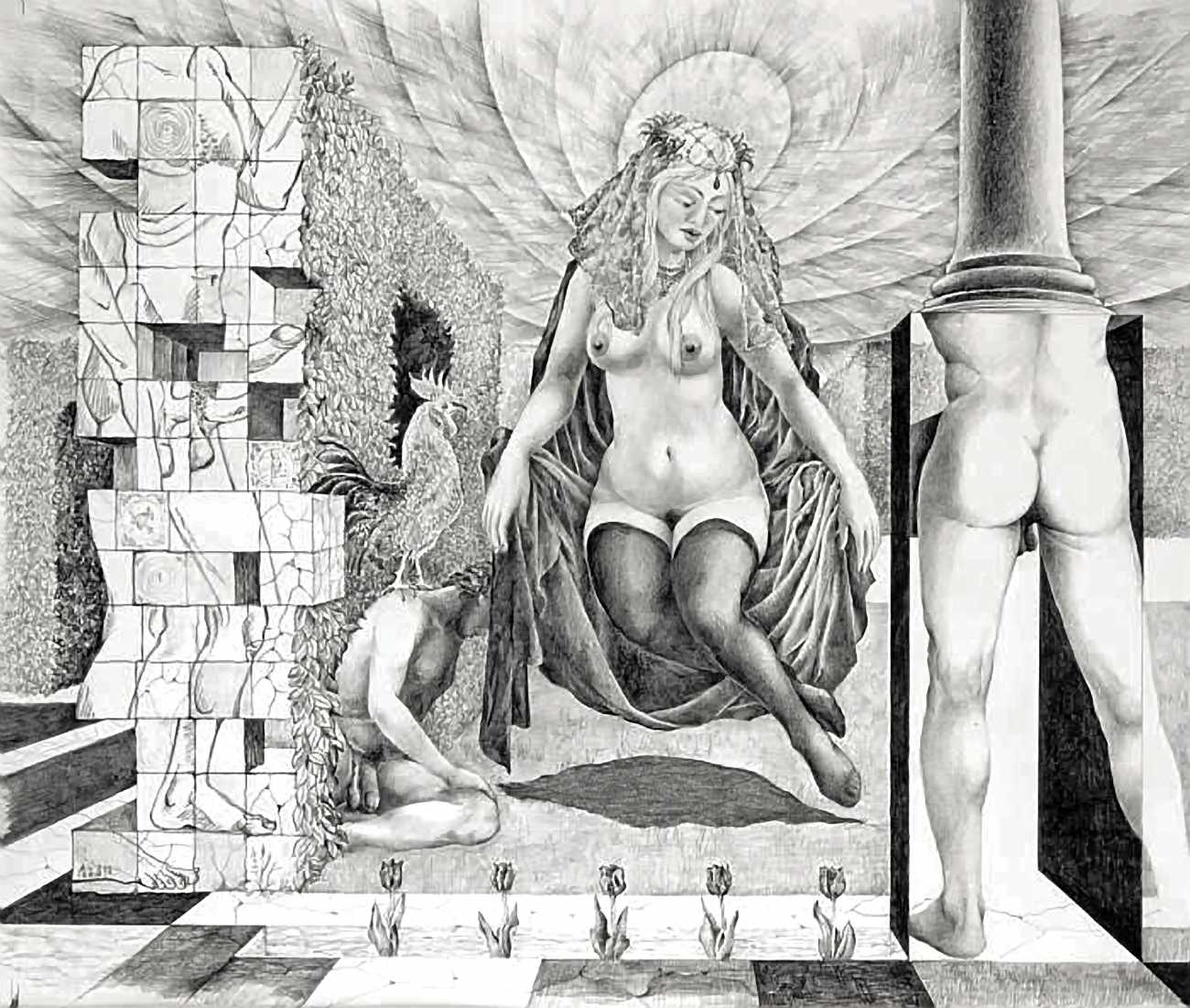 His artistic interests were wider than his home town however, and he was fascinated by classical history, co-authoring Das Goldene Buch vom Mittelmeer (The Golden Book of the Mediterranean, 1966), and an illustrated biography of Delacroix. He was also a talented artist in his own right, his detailed pencil drawings showing a keen interest in composition and mythology, often with surrealist elements.
