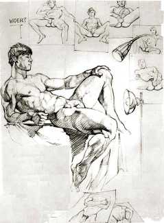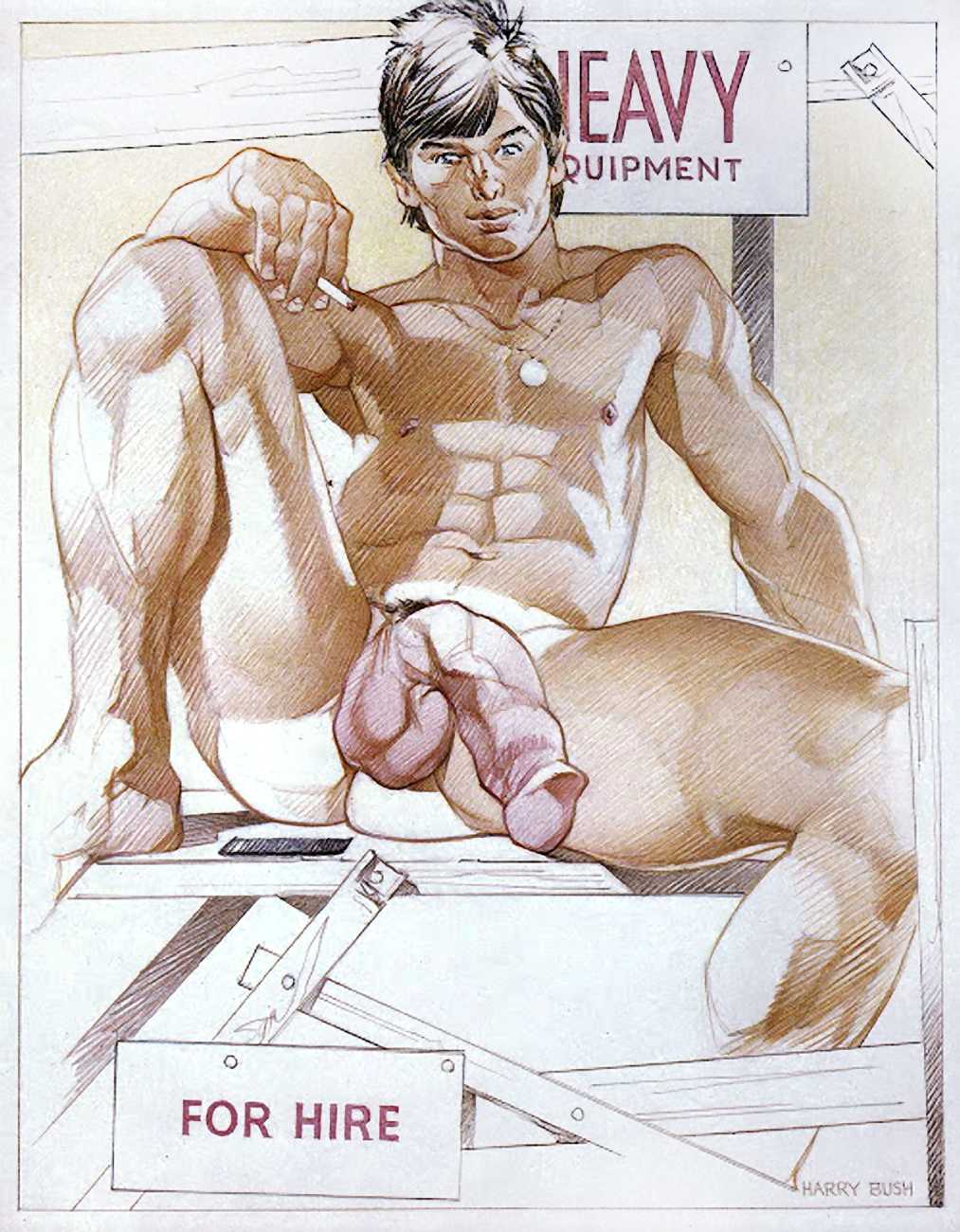 Harry Bush, best known for his detailed and brilliantly observed gay drawings, was a late developer as an artist, and it is remarkable that he was self-trained, having only taken only one community college drawing class in his early twenties.