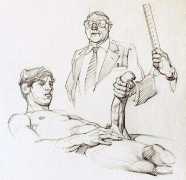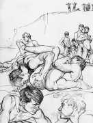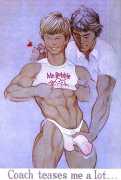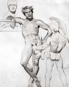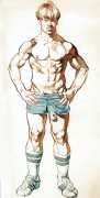 Why then is Harry Bush’s work not better known? The collaboration of Touko Laaksonen, better known as Tom of Finland, with Physique Pictorial magazine is well-known, yet few people remember Bush. The simple fact is that while Tom of Finland used the magazines of the 1960s as a springboard for the following decades, Bush did not. The sad reality is that behind those extraordinary designs, so vital, sunny and happy which the smiling boys presented, Bush was an sad and troubled soul. He was notoriously reclusive, and critical of what he perceived as the superficiality of the gay community. His isolation, combined with fears of copyright infringement, led him to destroy much of his original artwork. He remained closeted for the majority of his life due to a persistent fear that he would be outed and lose his veteran’s pension. Despite this, however, he never worked under a pseudonym and signed all of his art with his own name.