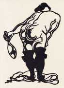 After military service in World War I he met the constructivist painter and sculptor Franz Wilhelm Seiwert in 1919, and worked with him on the journal Ventilator. Together with his wife Angelika (1899–1923), Hoerle became very active in the Cologne Dada scene around Johannes Baargeld and Max Ernst. He co-founded the artists’ group ‘Stupid’, and in 1920 published Die Krüppelmappe (The Cripples’ Portfolio), which established his style as a powerful combination of figurative constructivism and dour absurdism. He was very much influenced by the Russians Vladimir Tatlin and El Lissitzky, by Fernand Léger, and by the Dutch De Stijl movement. His paintings feature generic-looking figures, presented in strict profile or in stiff, frontal poses.
