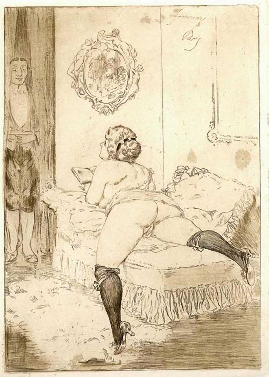 Erotic subjects seem to have been much in Lossow’s mind as he reached middle age, as this was also when he produced the set of etchings entitled Ein treue Diener, though most of his work was more standard fare, including a set of illustrations for a new edition of Shakespeare’s The Merry Wives of Windsor.