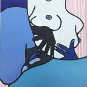 The British artist Helen Beard is one of a growing number of women experimenting with ways of reclaiming sexual imagery from a woman’s perspective. Her brightly-coloured paintings of cropped sexual images are drawn from pornographic material, but subverted into joyous works, taking back ownership of sexual imagery from the predominately male gaze.