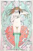 As a book illustrator, he created plates for more than twenty books, including Octave Uzanne’s Voyage autour de sa chambre (Voyage Around His Room) and Pierre Louÿs’ Byblis. In November 1933 the Écale Gallery in Paris exhibited some sixty of his watercolours and sanguines. His style has been described as symbolist, and many of his illustrations include elements which can be seen as indicative of mortality, seeking to represent significant ideas through metaphorical images.