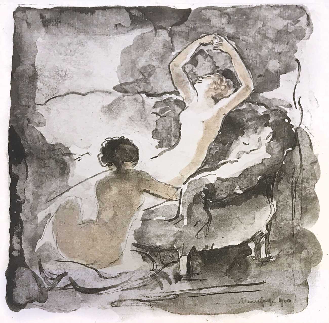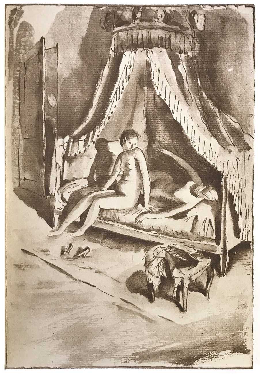 After the war Farge devoted himself to painting, etching, monotypes and illustration. His subjects ranged from Parisian urban life, especially the Quais de la Seine, to literary and genre subjects. From 1923 he worked with a circle of artists around Édouard Chimot for Éditions d’Art Devambez, illustrating several bibliophile editions. As well as Verlaine’s Les amies, his book illustrations include Johan Ludvig Runeberg’s Nadeschda, Claude Farrère’s L’homme qui assassina, and Pierre Loti’s Aziyadé.